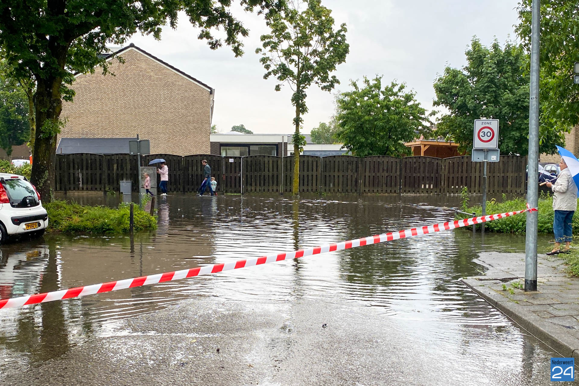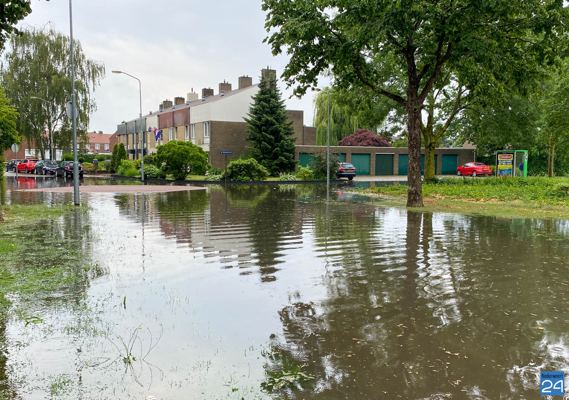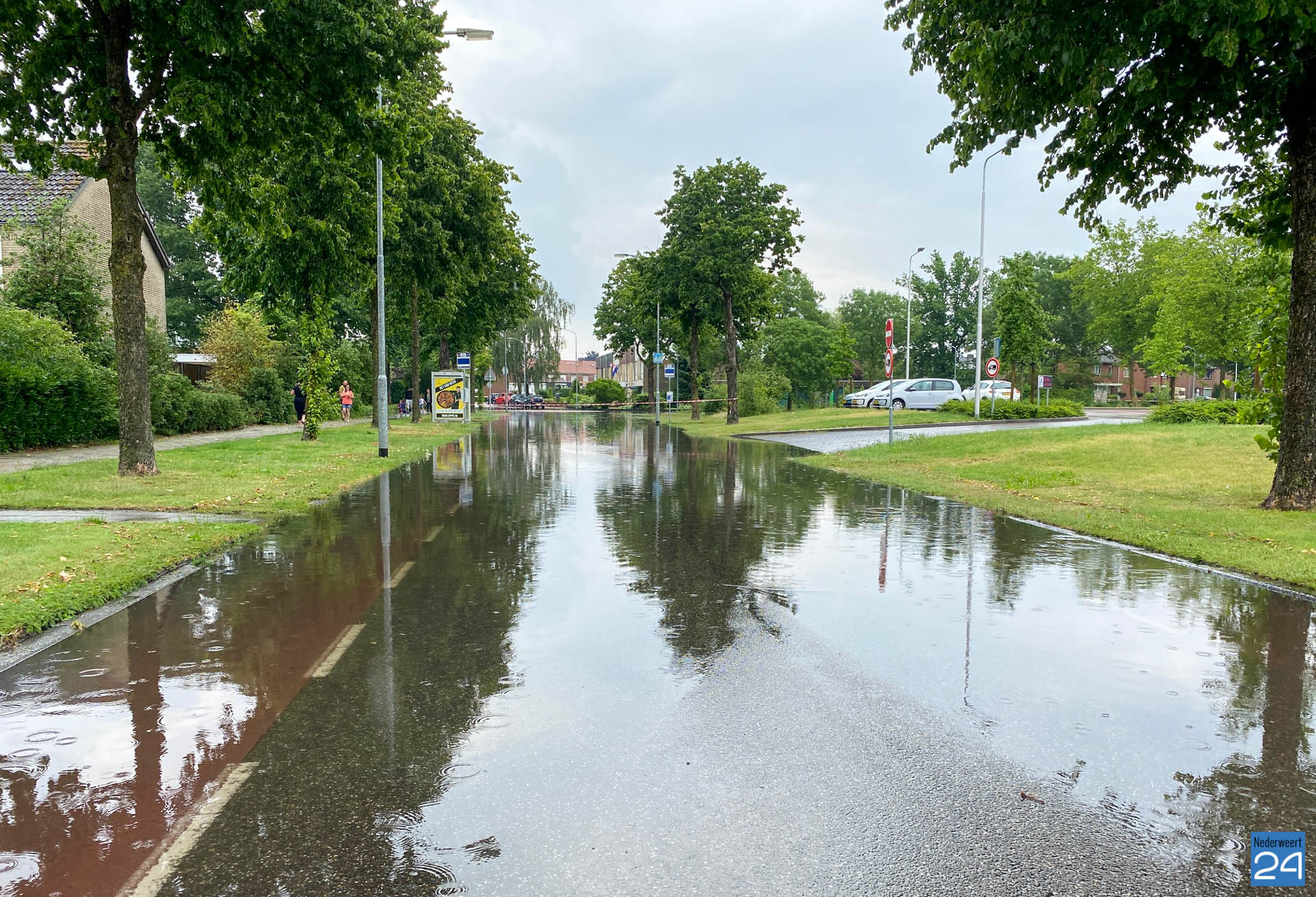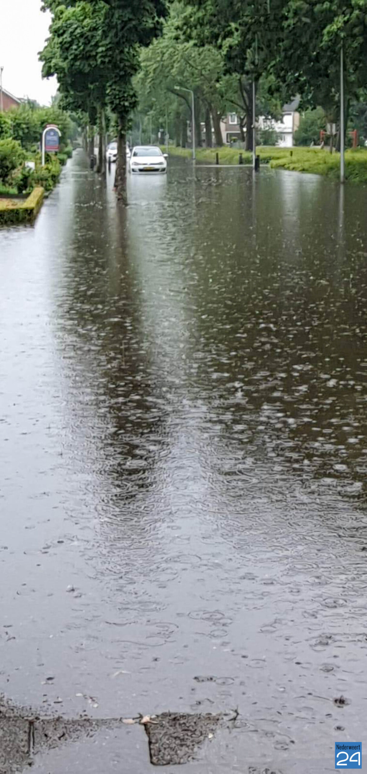 In Weert zijn zondag straten blank komen te staan door hevige regenval.