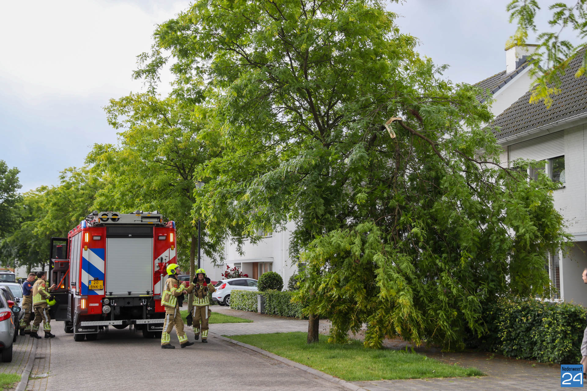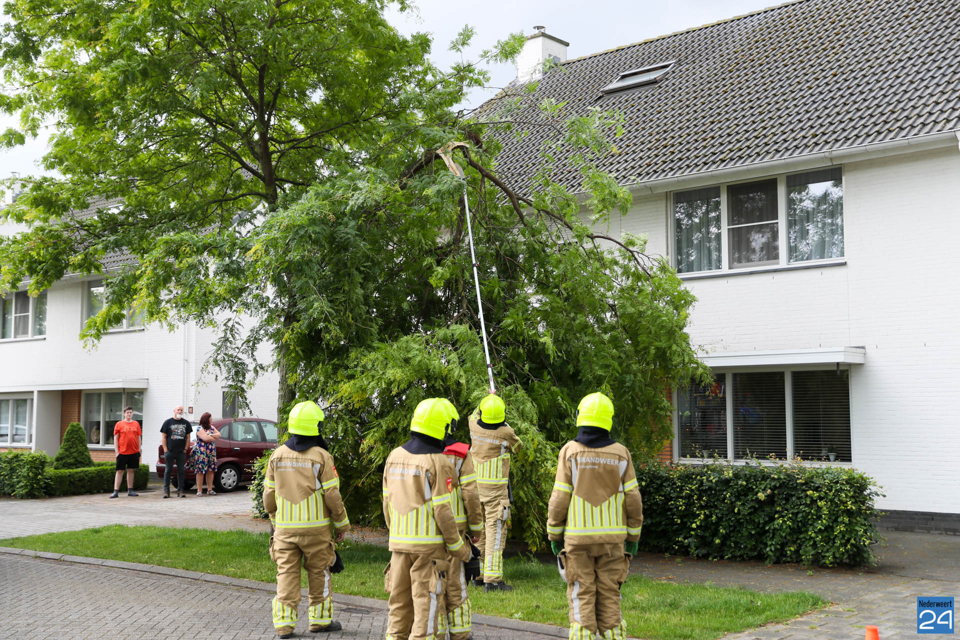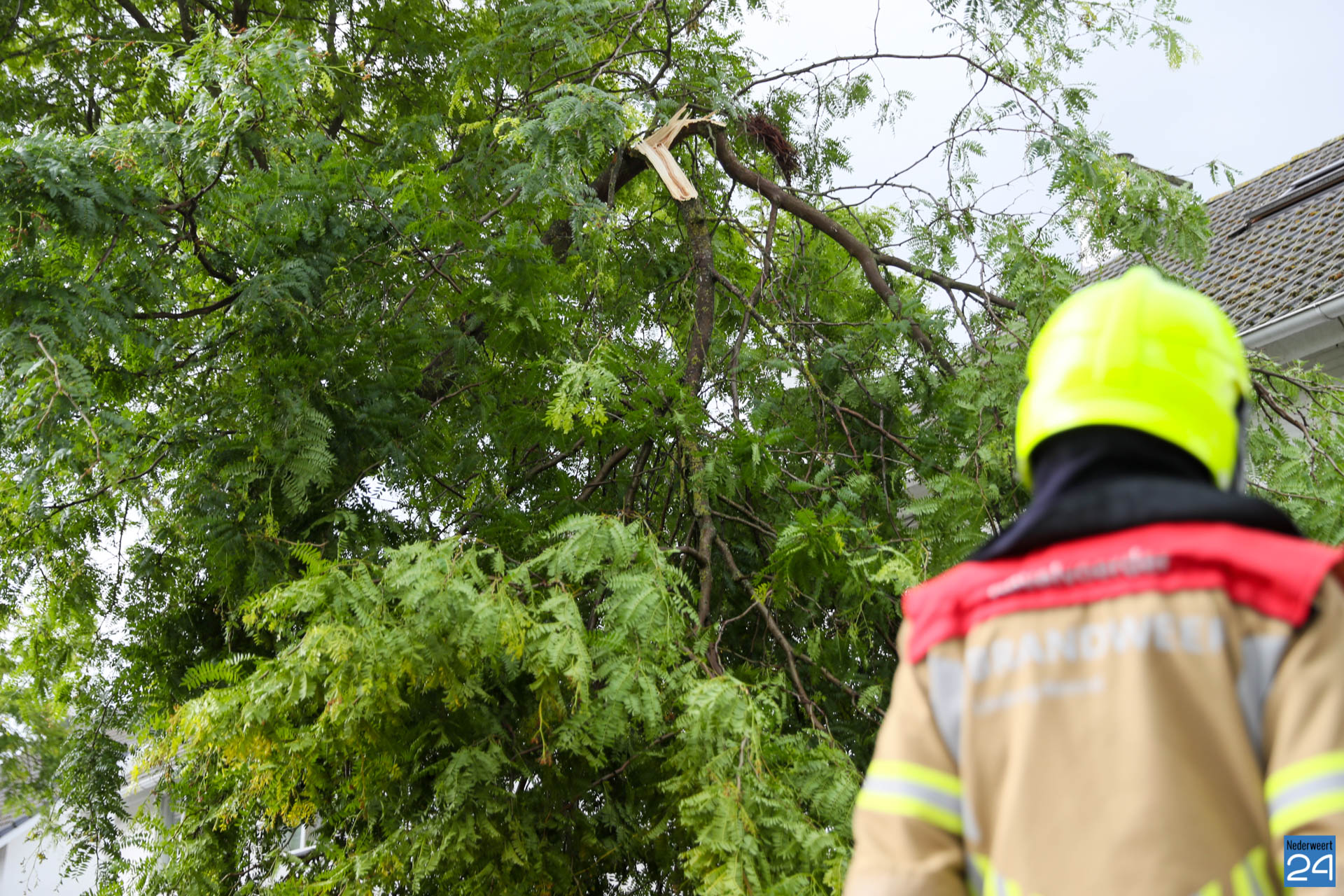 Woensdagavond is een tak afgebroken van een boom bij een woning aan de Hoge Notte in Nederweert.
