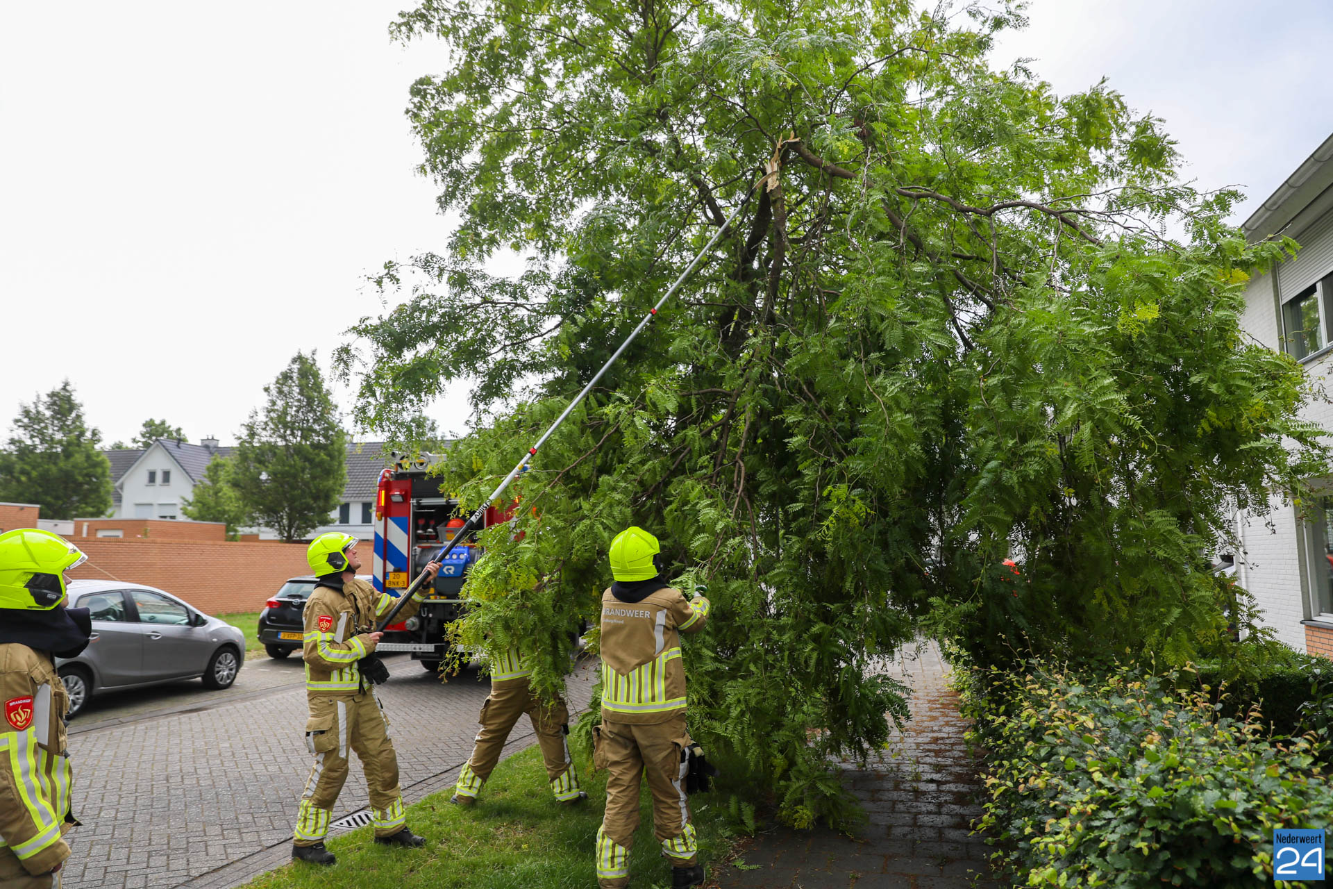 Een tak brak waarschijnlijk door de harde wind en de regen. Omdat de bewoners niet direct wisten wat te doen belden ze de hulpdiensten. Met een zogenaamde ‘stokzaag‘ werd de tak door de brandweer verwijderd.