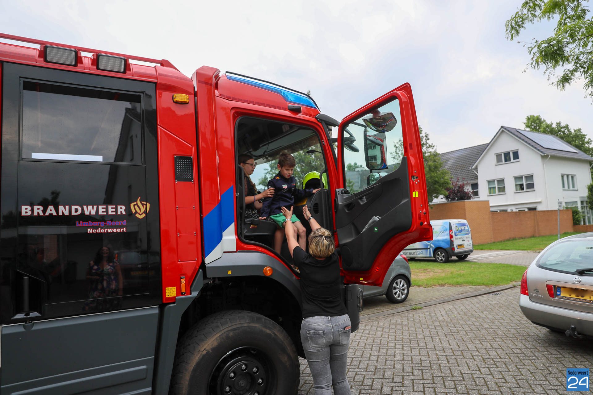 De jeugdige buurtbewoners vonden de brandweerwagen maar wat spannend en dus lieten de vrijwilligers, zoals het de vrijwilligers van de brandweer Nederweert altijd betaamd, de nieuwsgierige jeugd in de brandweerauto kijken. Dit tot groot vermaak. Jong geleerd is oud gedaan.
