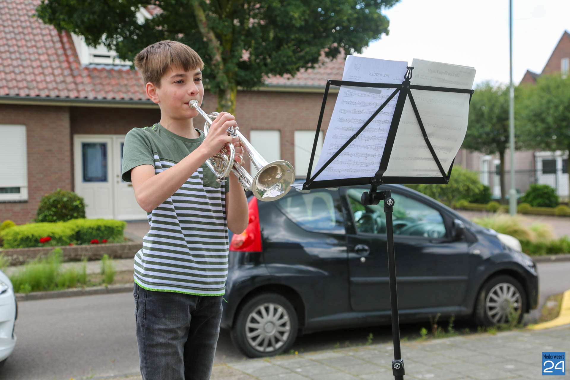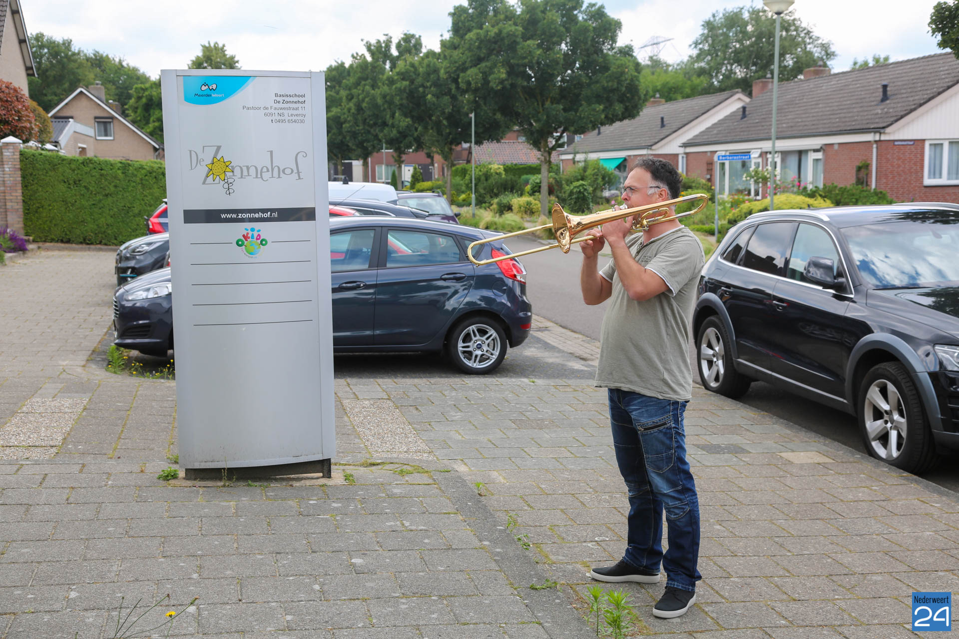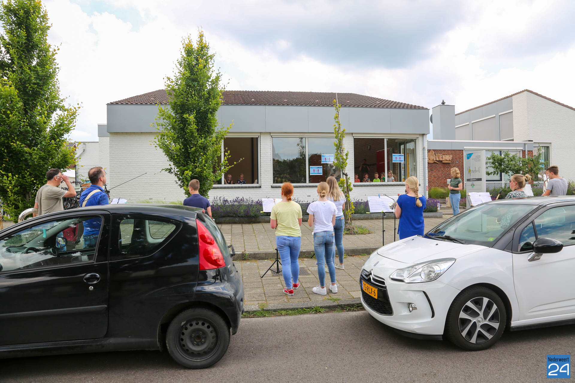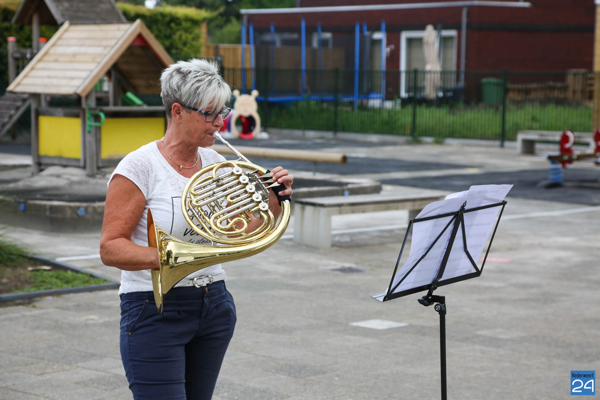 Voor 4 verschillende ramen, ieder aan een andere kant van de school, volgden de groepen 1-2, 3-4, 5-6 en 7-8 de optredens door leden van de fanfare. Zo maakten de leerlingen kennis met de bugel en de trompet, de hoorn, trombone en bas, de saxofoon en het slagwerk. De leerkrachten in de klas voorzagen de leerlingen van de benodigde achtergrondinformatie. Ook werd er gesproken over hoe ze de instrumenten vonden klinken en welk gevoel de muziek bij hen opriep. Daarnaast werd er een link gelegd met de vele raamconcerten die gegeven zijn in de coronaperiode. Als afsluiting speelden alle muzikanten samen voor alle ramen The Lions leeps Tonight.