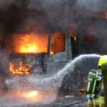 Het vuur werd bestreden door verschillende korpsen uit de omgeving. Er werd opgeschaald naar zeer grote brand. Een vrachtwagen en enkele landbouwmachines kunnen als verloren worden beschouwd. Ook de paardenstal raakte flink beschadigd. Verder heeft een hooiopslag van 8×20 meter vlam gevat.