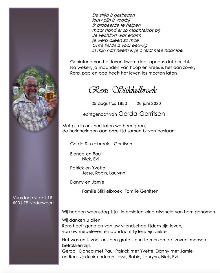 Overlijdensbericht: Rens Stikkelbroek