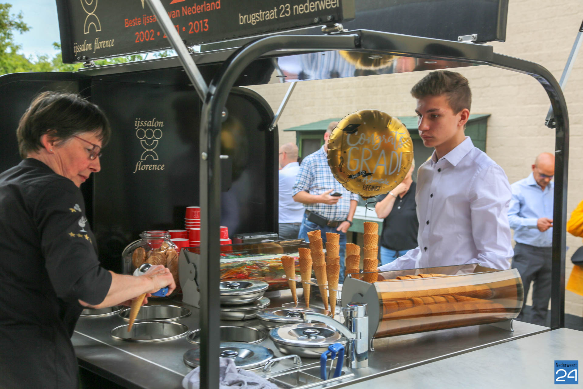In de avond mochten de leerlingen uit de twee examenklassen, iedere klas op een eigen tijdstip, hun felbegeerde papiertje in ontvangst nemen. De aula werd feestelijk ingericht. De diploma-uitreiking werd  afgesloten met een lekker welverdiend ijsje van ijssalon Florence uit Nederweert.