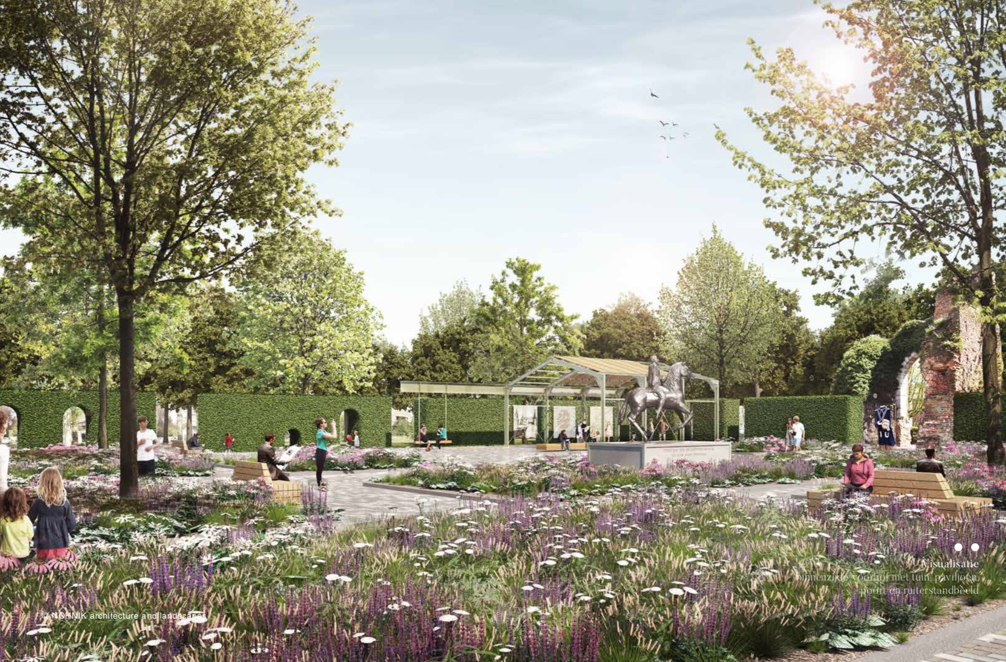 Wethouder Martijn van den Heuvel: “Juist op deze vrijkomende locatie, de voormalige voorburcht van kasteel De Nijenborgh is een mooie plek om de historie van Weert zichtbaar te maken. Deze historie is in dit ontwerp zichtbaar én beleefbaar gemaakt. Zo krijgt het ruiterstandbeeld, een burgerinitiatief, een prominente plek op de voorburcht. Daarnaast wordt steen ingeruild voor groen. Meer beplanting, met meer variatie in soorten, draagt bij aan een gezond park. Een park dat bijdraagt aan een beter stadsklimaat. Ook krijgt het water een prominentere rol. Een klein stukje van de historische stadsgracht wordt zichtbaar gemaakt. Deze voormalige stadsgracht werd van water voorzien door de Bocholterbeek. We starten in november met archeologisch onderzoek en bodemsanering. Volgens planning zou het park eind 2021 gereed moeten zijn.”
