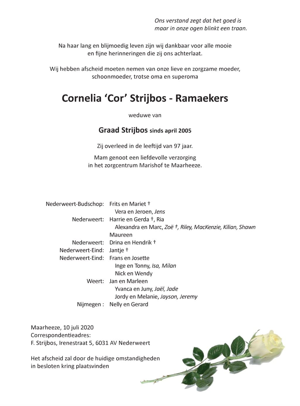 Overlijdensbericht: Cornelia ‘Cor’ Strijbos – Ramaekers †