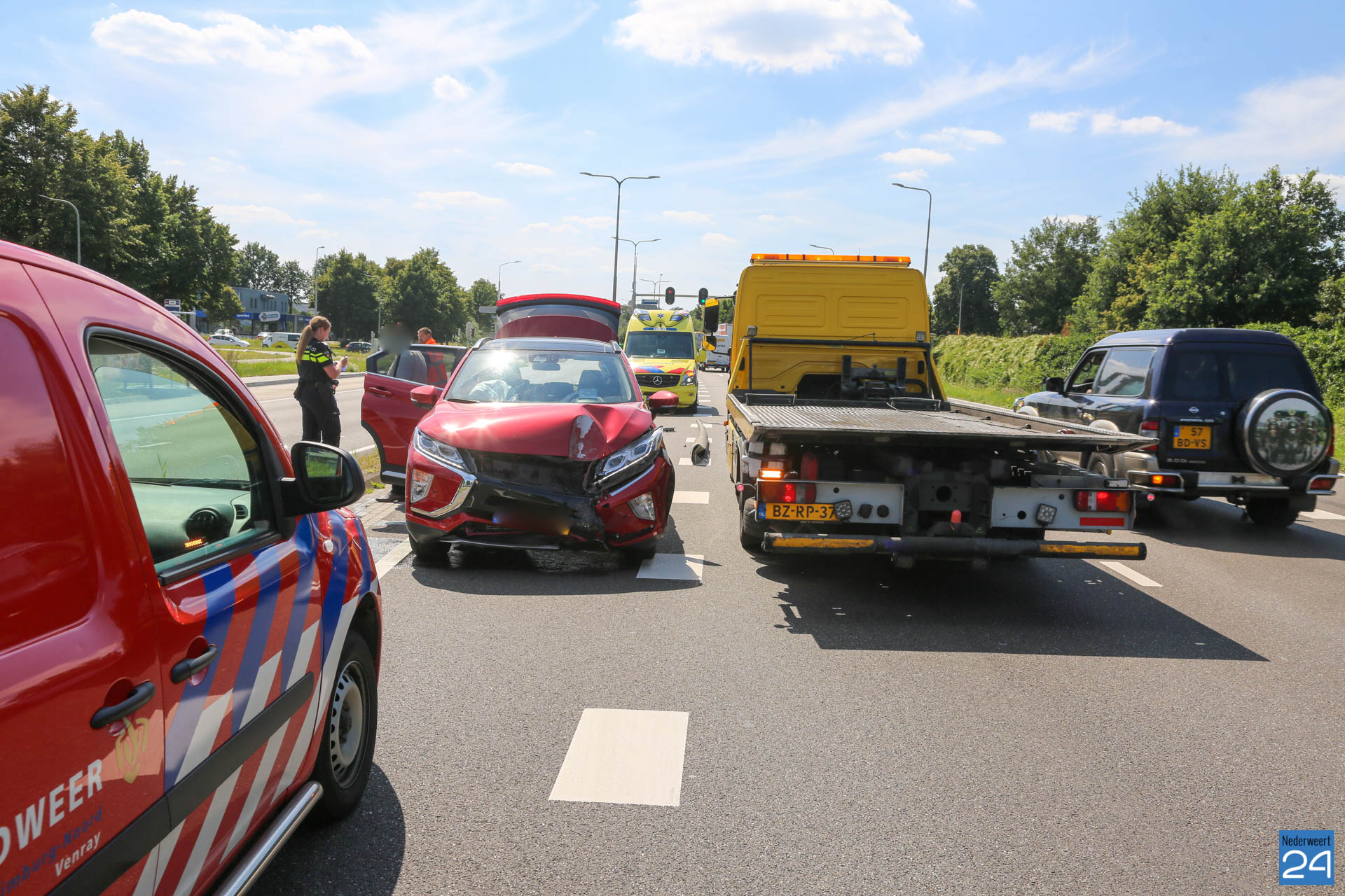 Twee personenauto’s zijn donderdagmiddag met elkaar in botsing gekomen op de Randweg Zuid N275 in Nederweert.