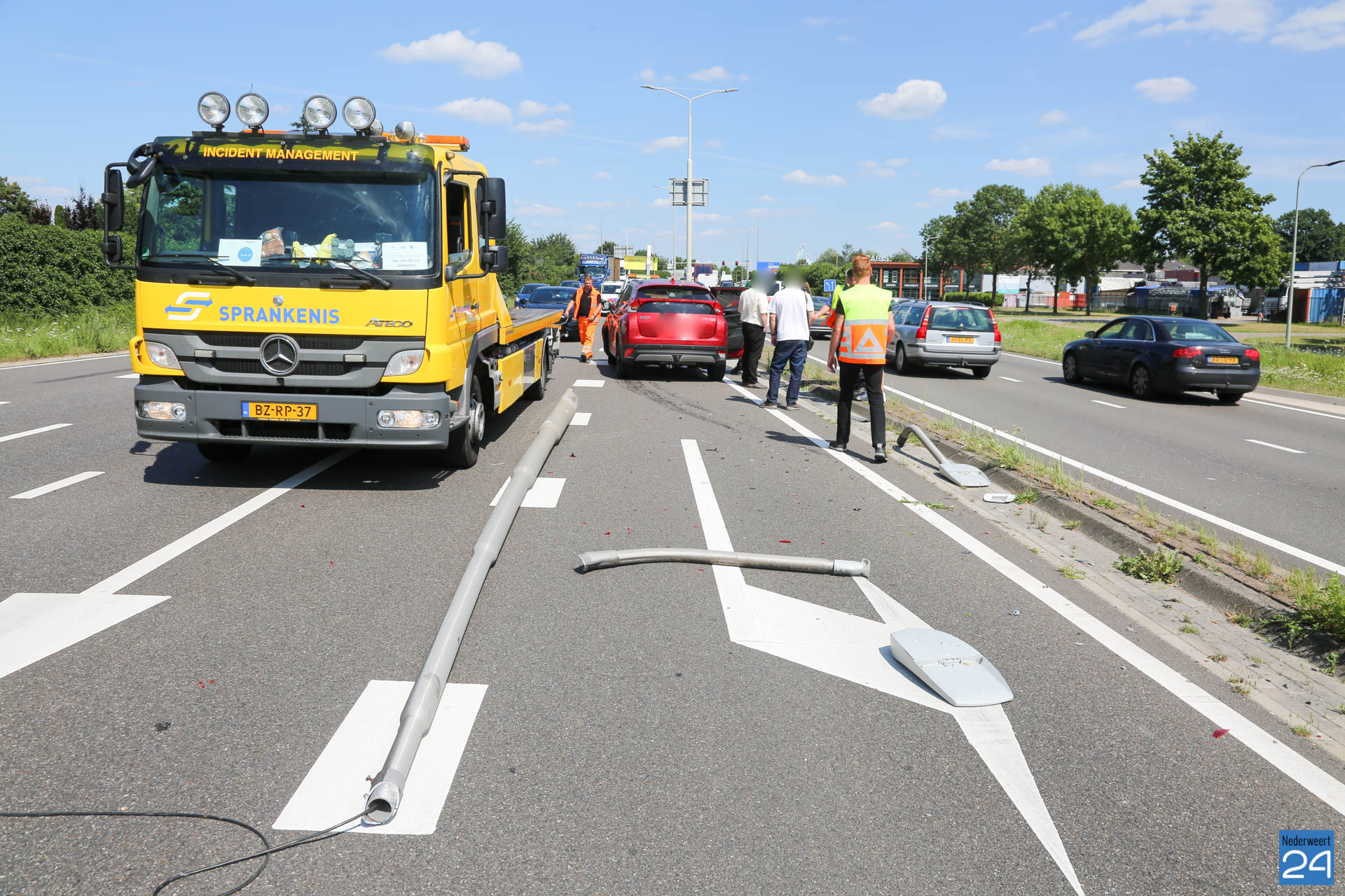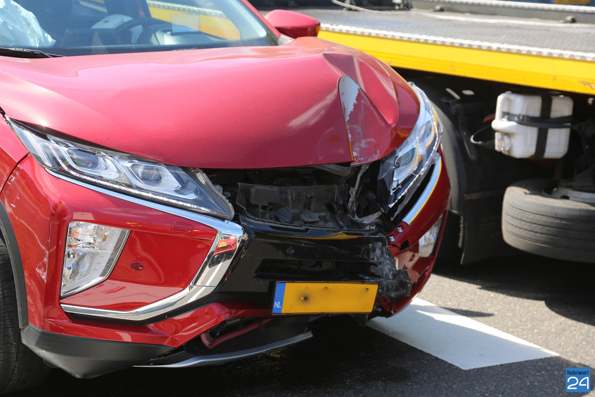 De voertuigen raakte flink beschadigd. Ook een lantaarnpaal raakte beschadigd. Deze brak af en kwam op de weg terecht. Waarschijnlijk kwam de bestuurder van de rode auto vanuit Weert gereden en is hij op de andere weghelft terecht gekomen.