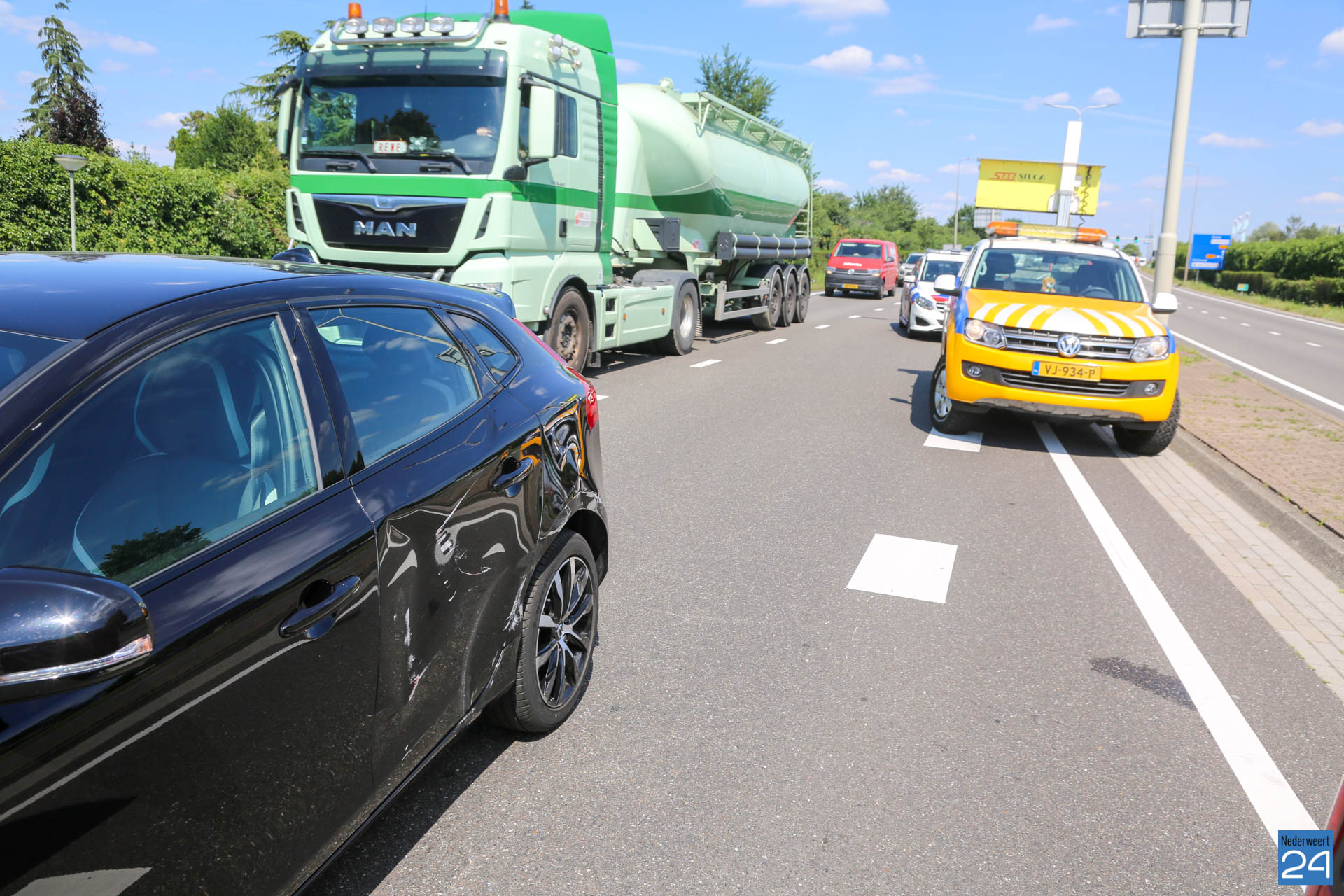 Politie, medewerkers van de Provincie Limburg en een berger hebben de weg schoongeveegd. De beschadigde auto’s zijn vervolgens afgesleept. Door het ongeval kwam het verkeer tijdelijk vast te staan in de richting van Weert.
