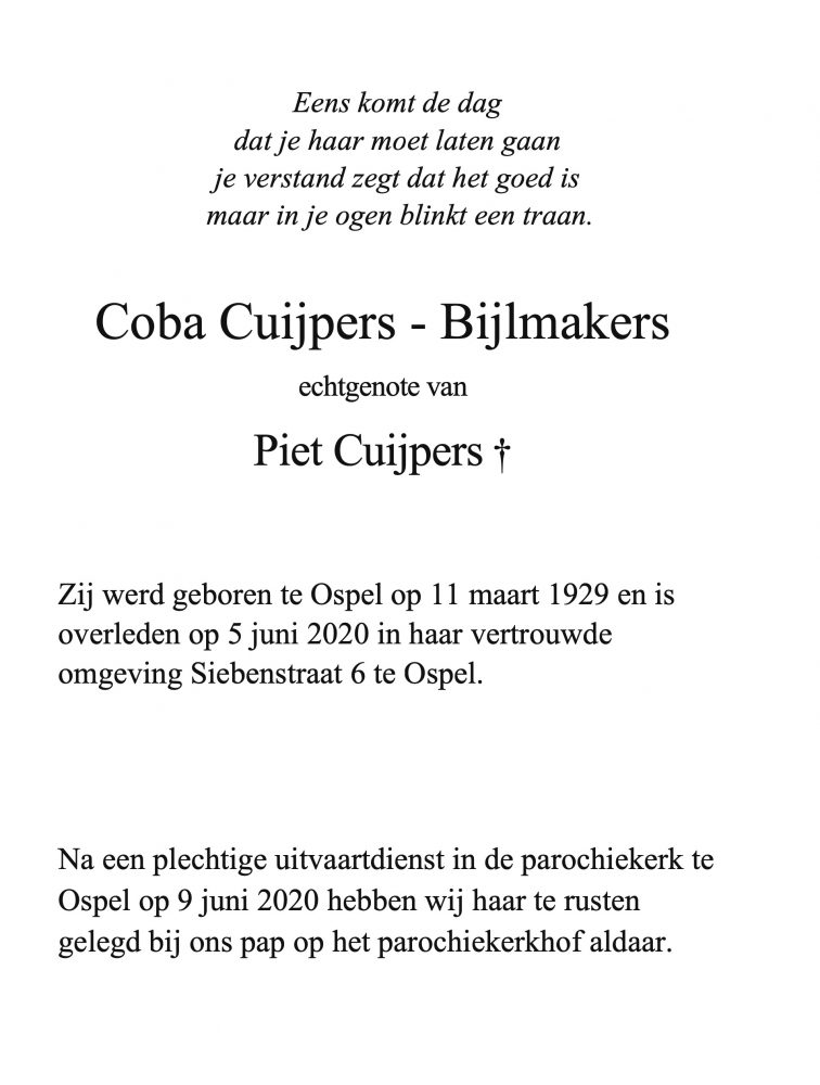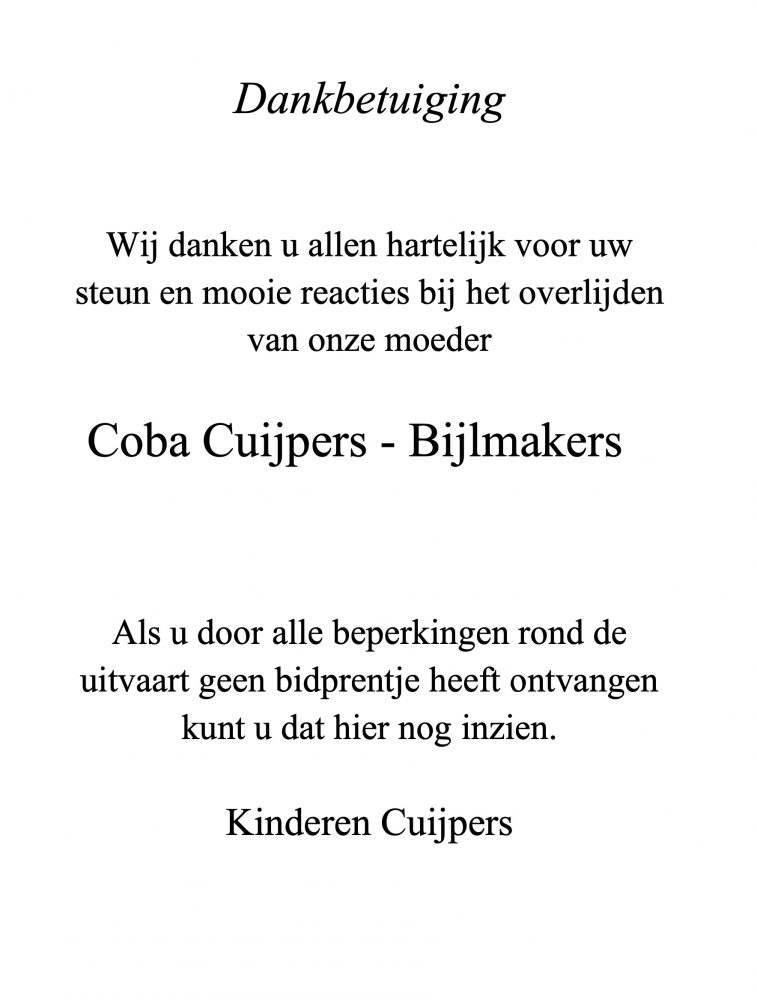Dankbetuiging Coba Cuijpers – Bijlmakers