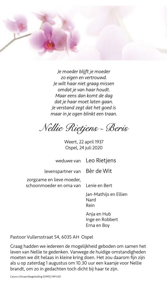 Overlijdensbericht: Nellie Rietjens ~ Beris