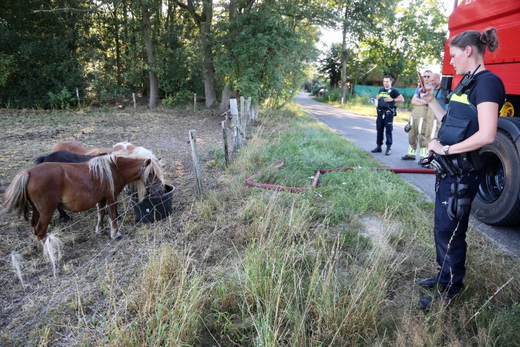Een groepje pony’s in een wei aan de Breijbaan in Weert is zonder water komen te zitten. De politie ontving hierover een melding omdat het behoorlijk heet was vandaag.