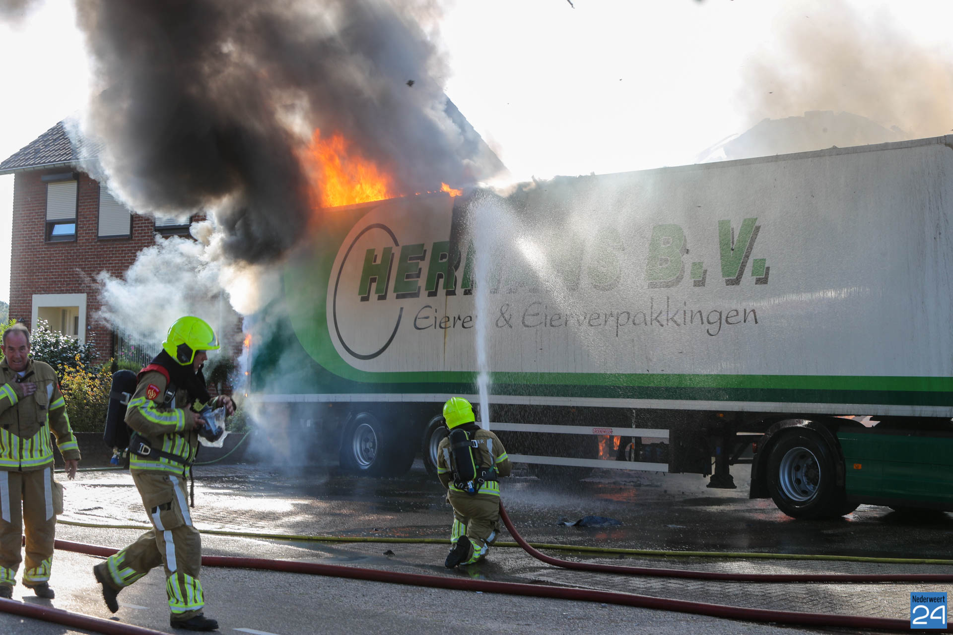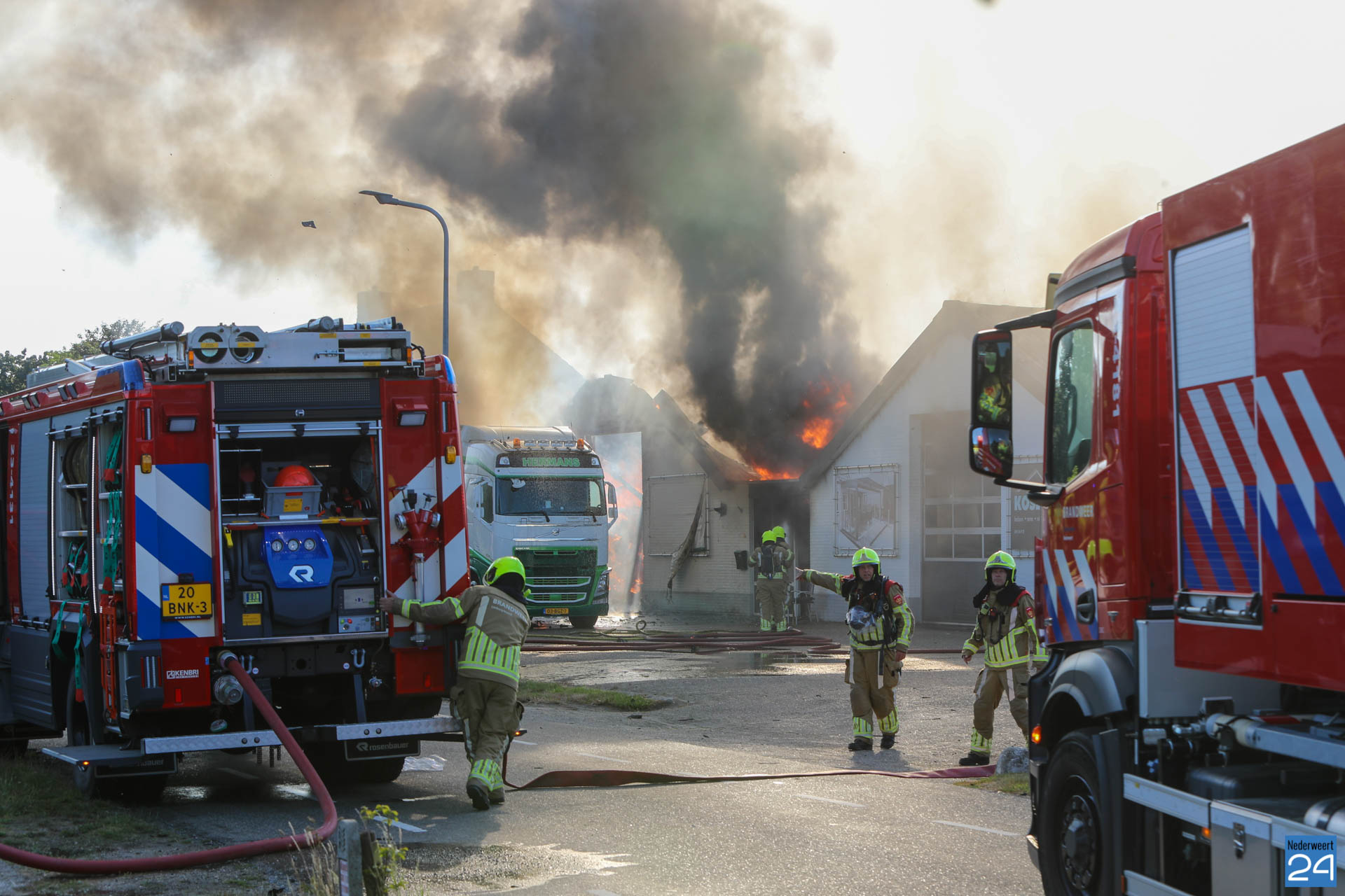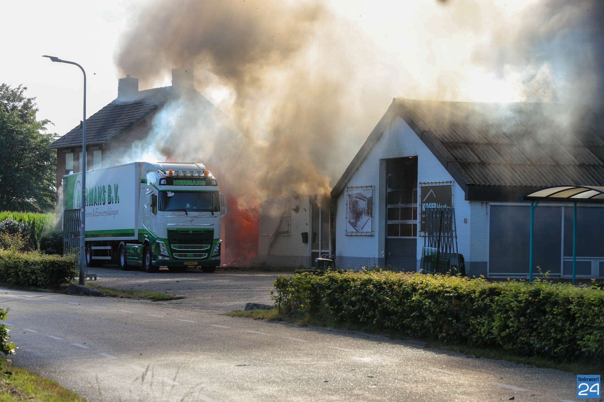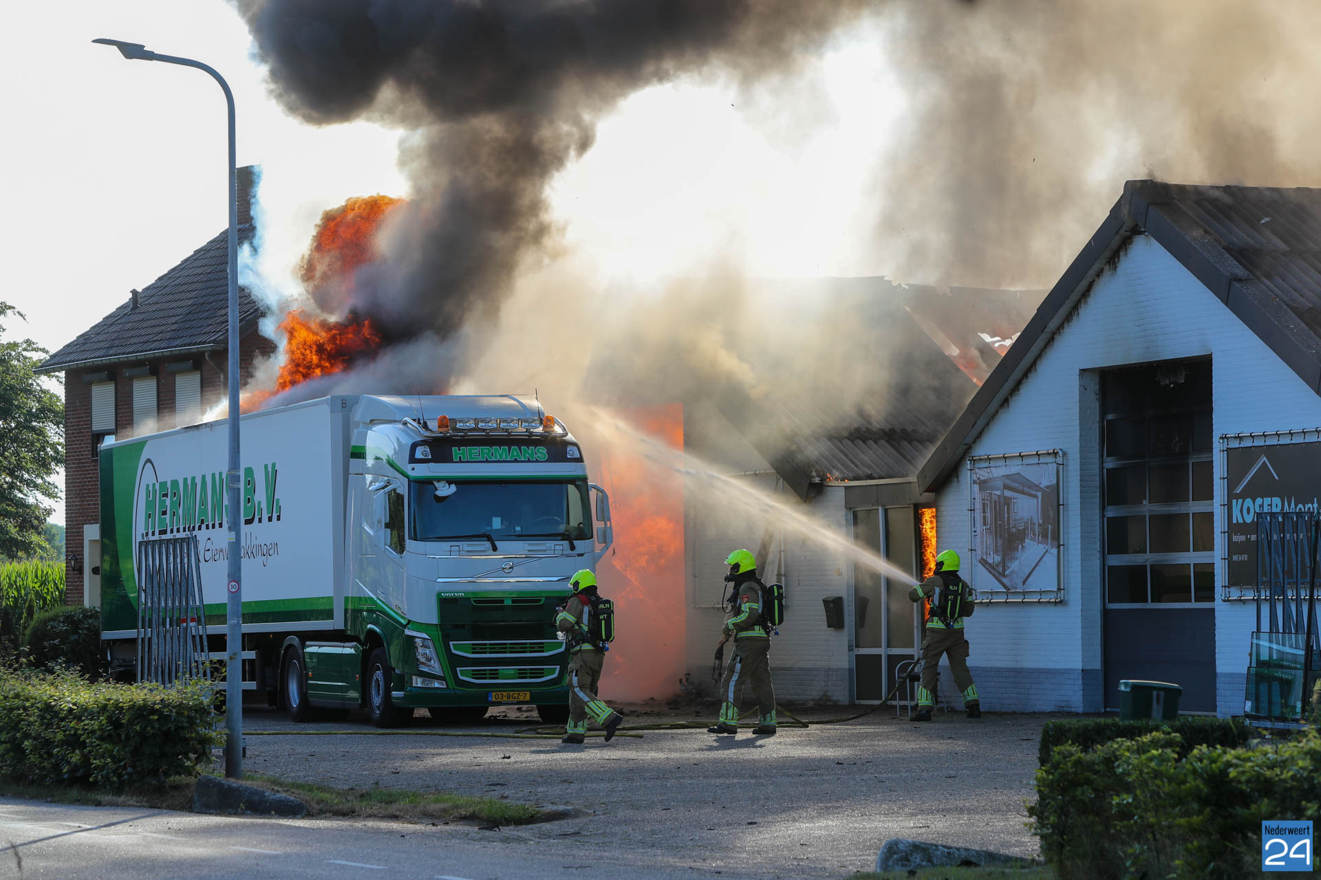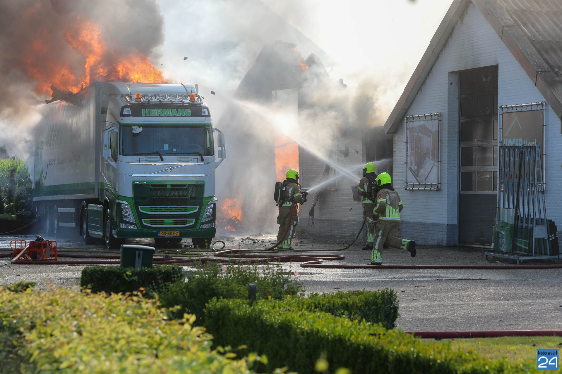 “De brandweer heeft weten te voorkomen dat de aangrenzende loods en de twee naastgelegen woningen bespaard bleven.”