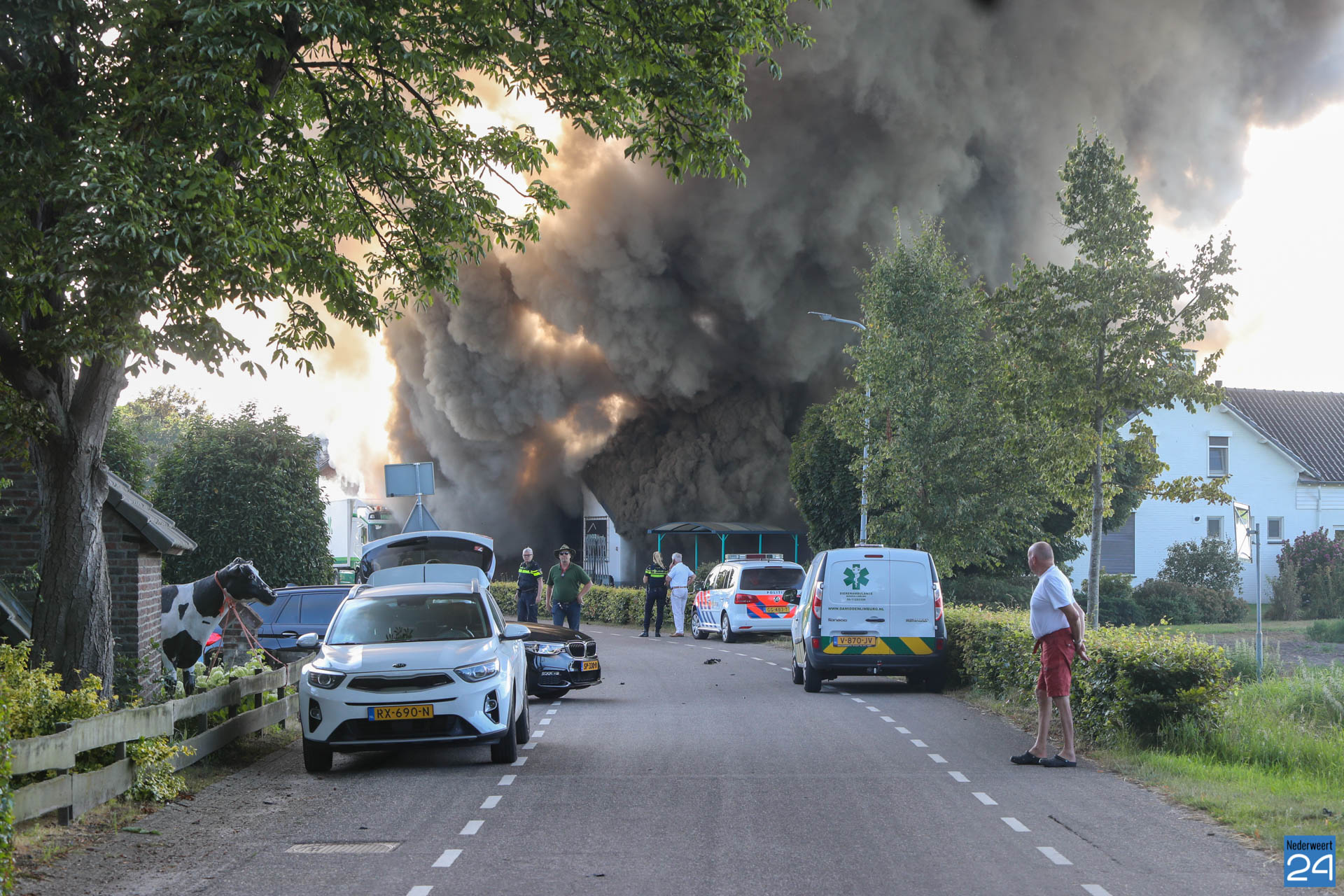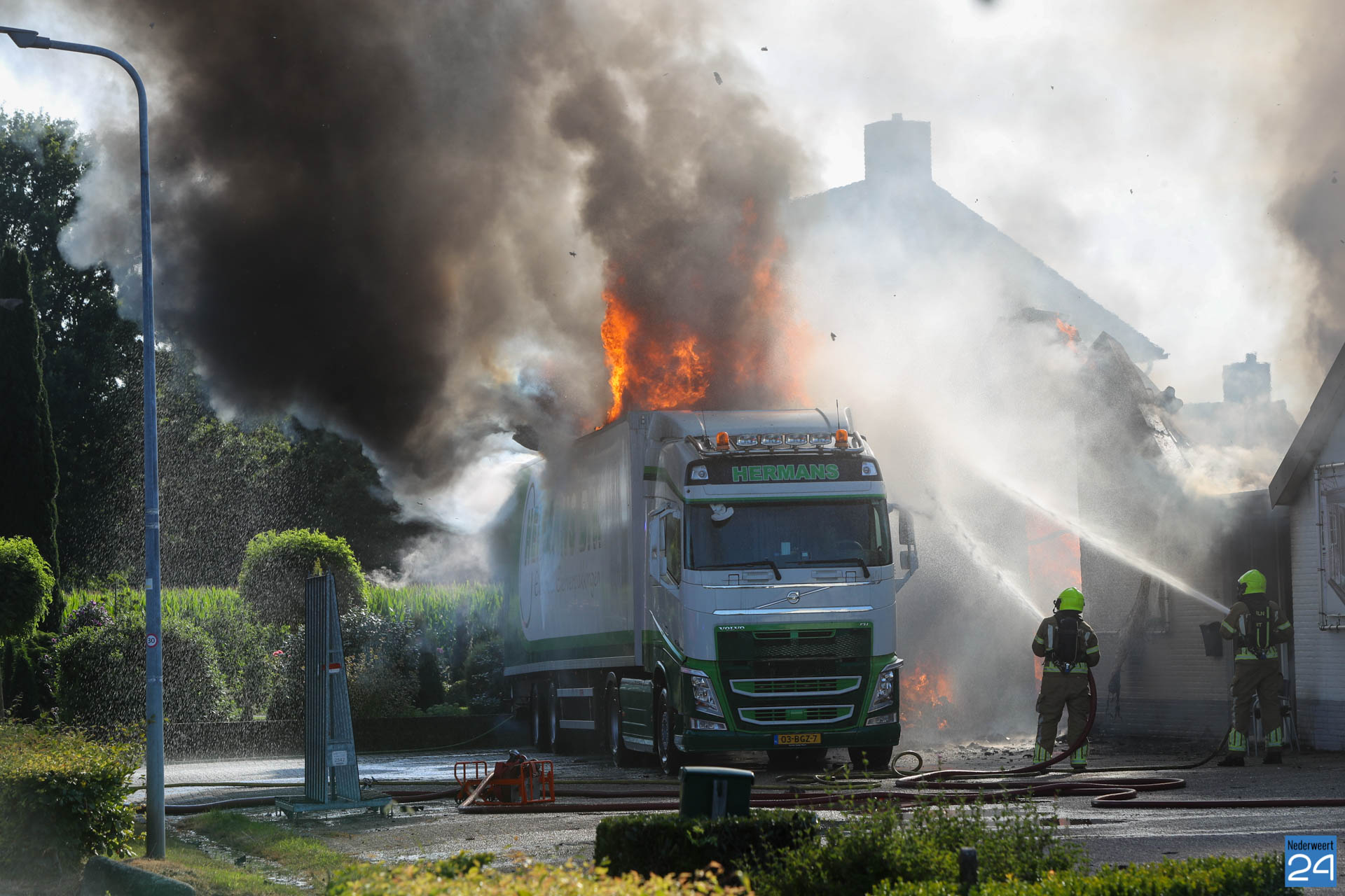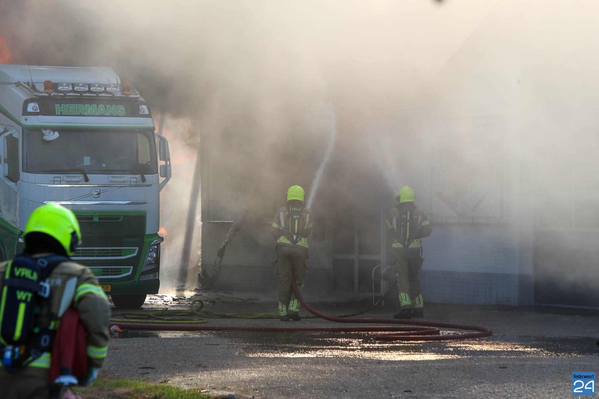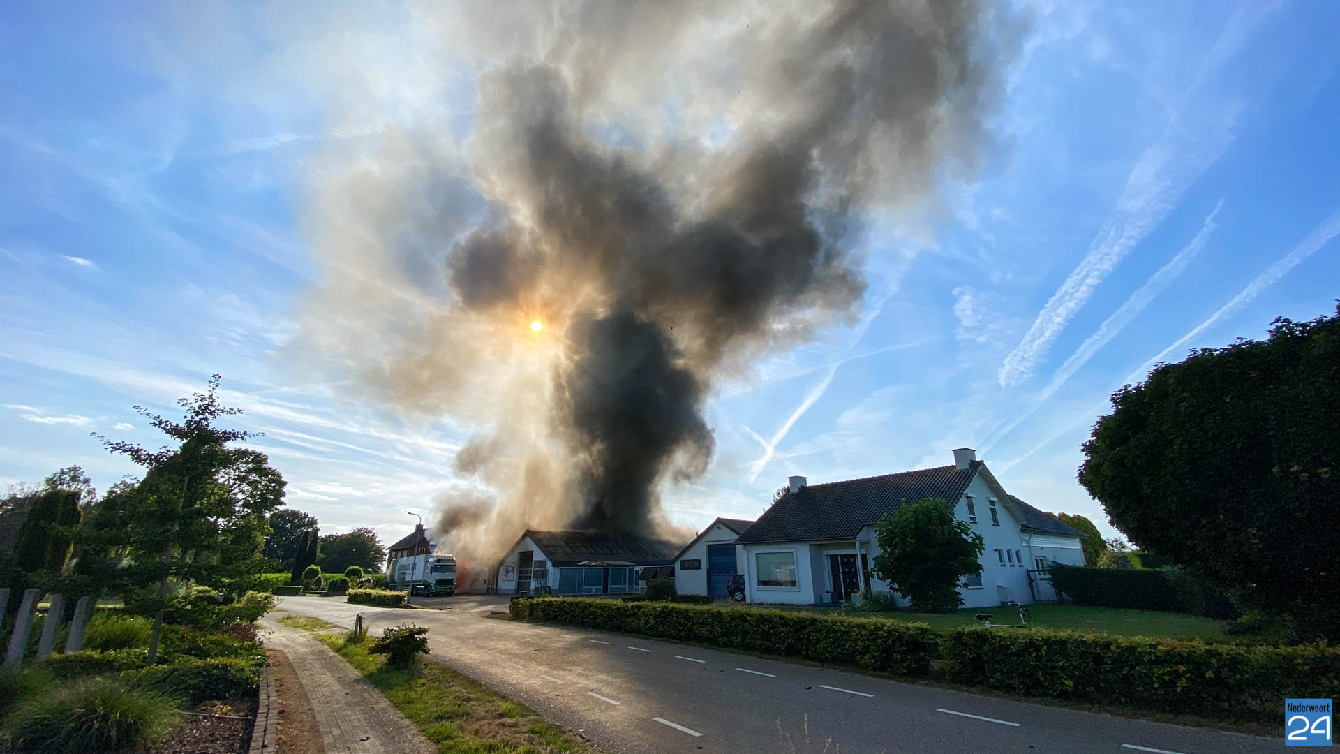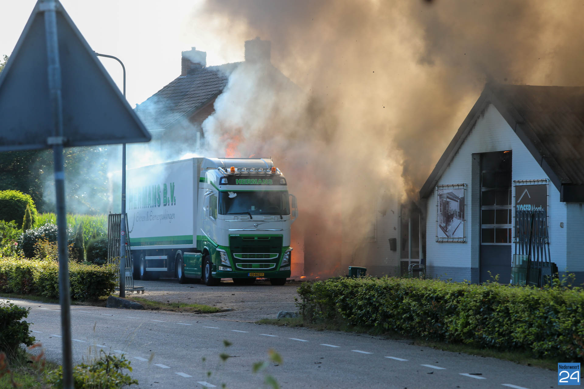 “De brandweer heeft weten te voorkomen dat de aangrenzende loods en de twee naastgelegen woningen bespaard bleven.”