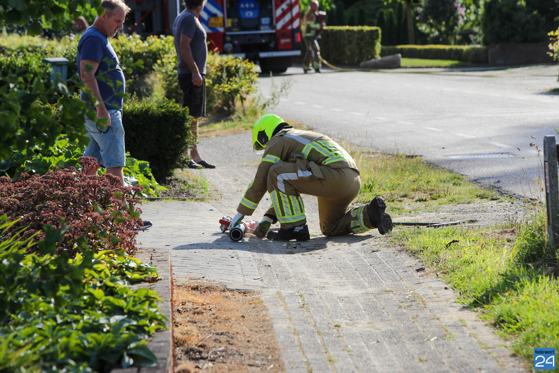 Ik denk dat de brandweer er voor heeft gezorgd dat de loods en woningen gespaard zijn gebleven of heeft weten te voorkomen dat ze in vlammen op zijn gegaan. Het lijkt me niet dat de brandweer er juist voor zorgt dat alles in de fik vliegt.
