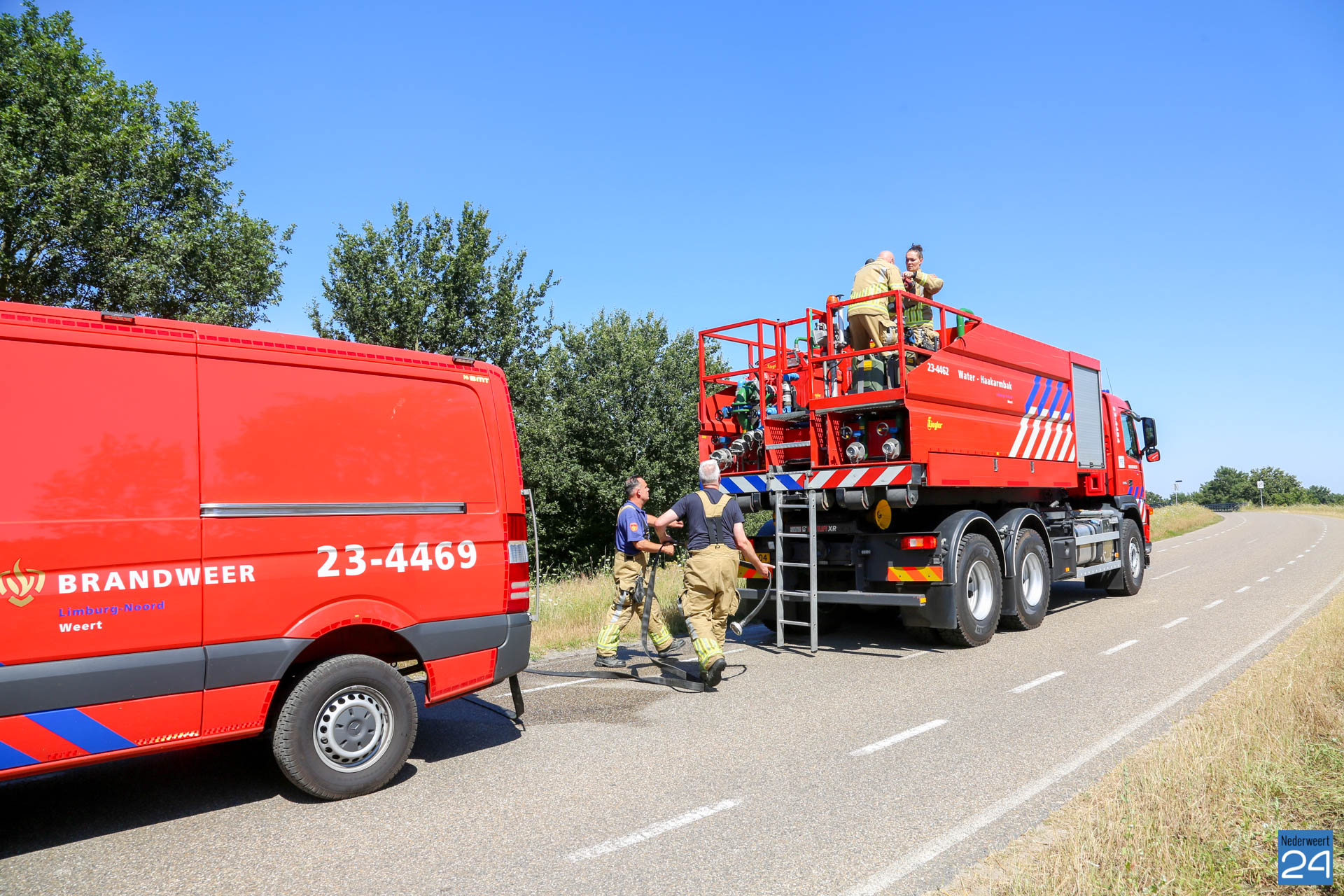 De bewoonster van een naastgelegen woning merkte de brand op. De man des huize probeerde het vuur met een brandblusser te blussen, maar door de wind en droogte breidde het vuur snel  uit. De brandweer van Weert en Nederweert kwamen met het snelle interventie voertuig, een bluswagen en twee waterwagens te plaatse. Met een waterkanon werd het vuur definitief gedoofd.