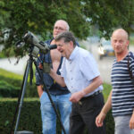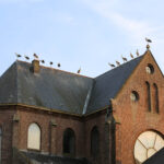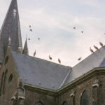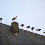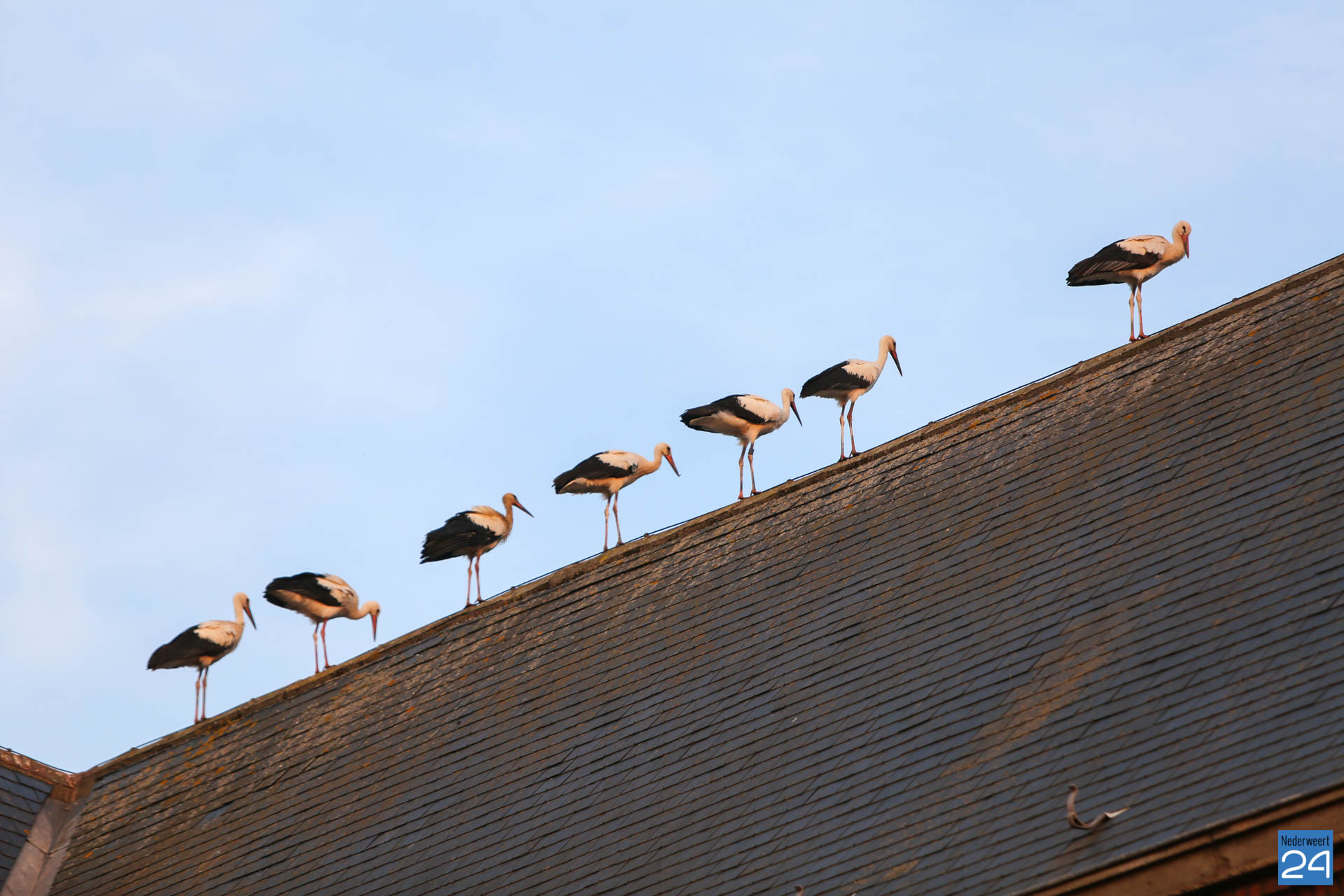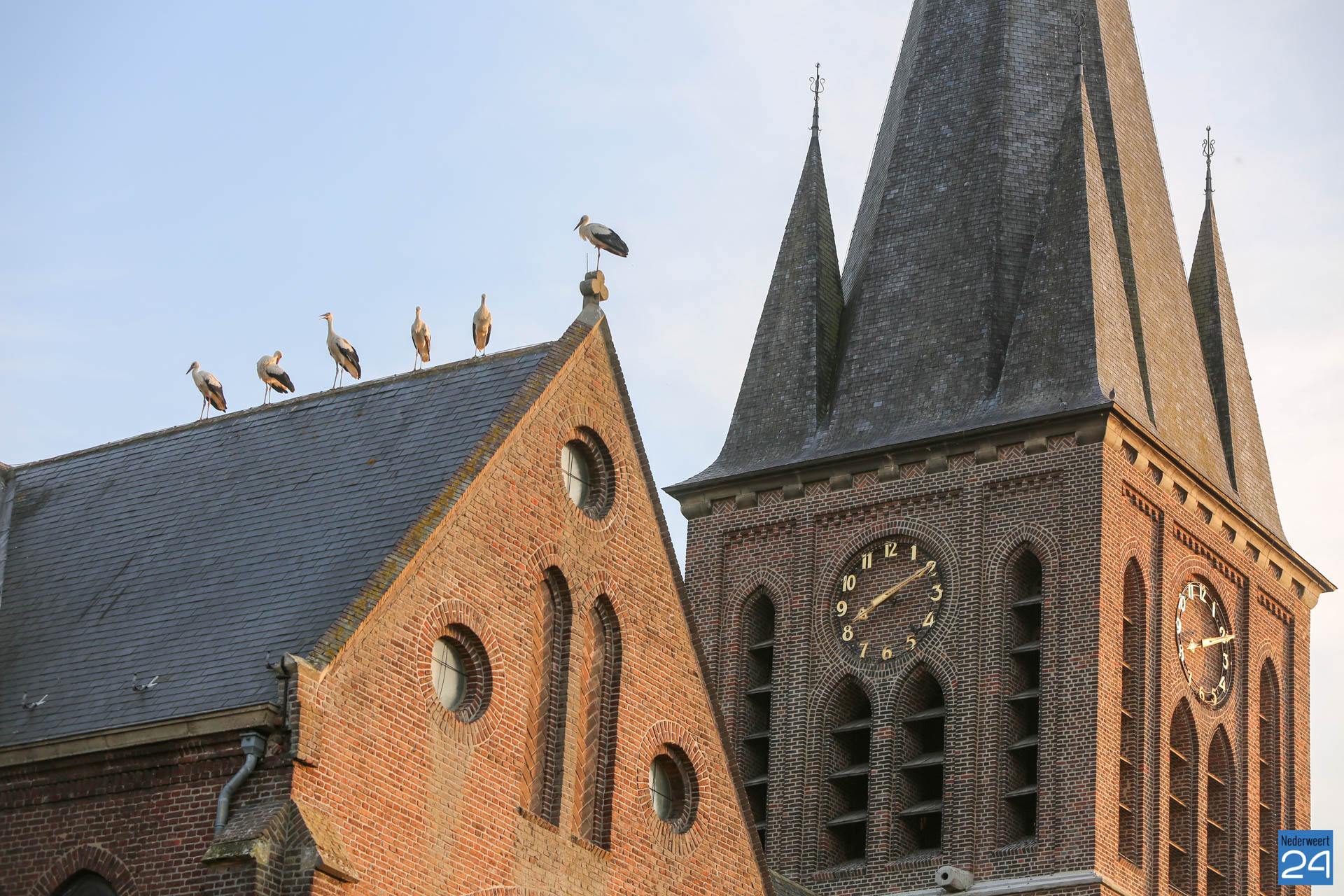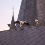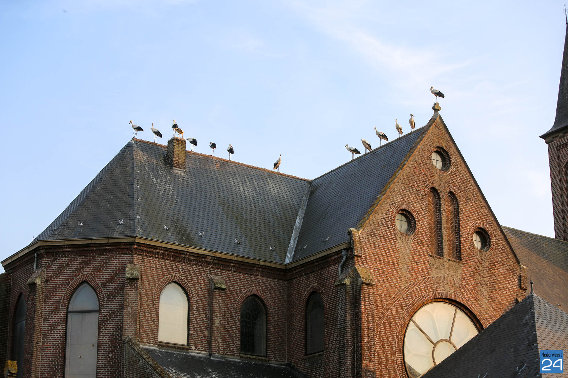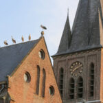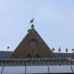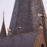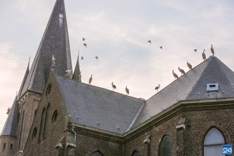 Volgens een vogelkenner hebben enkele ooievaars een ring om waarop te lezen valt dat ze vanaf Duitsland deze kant op zijn gekomen. De groep is onderweg naar Zuid-Europa of zelfs Afrika. Voorbijgangers maakte een stop bij de kerk om een kijkje te nemen bij de trekvogels. Enkele met een camera om de nek, een ander met de telefoon in de hand.