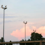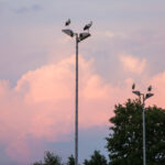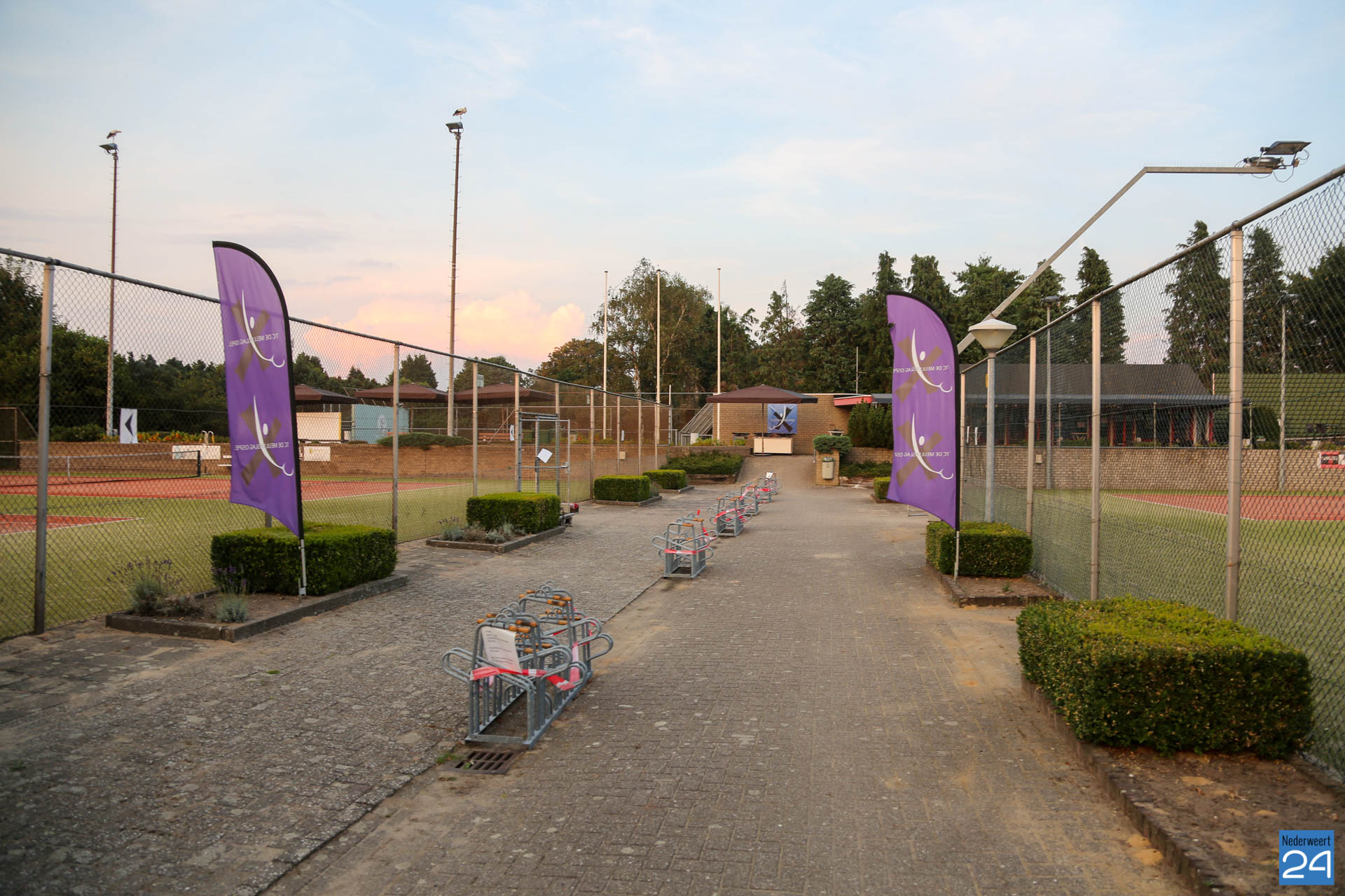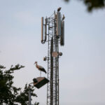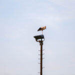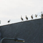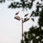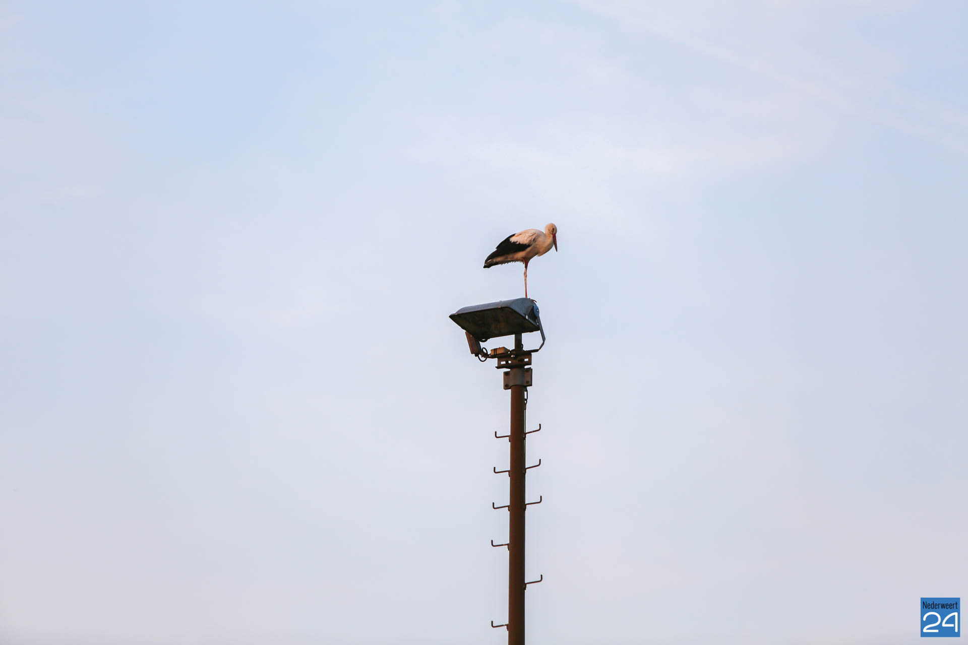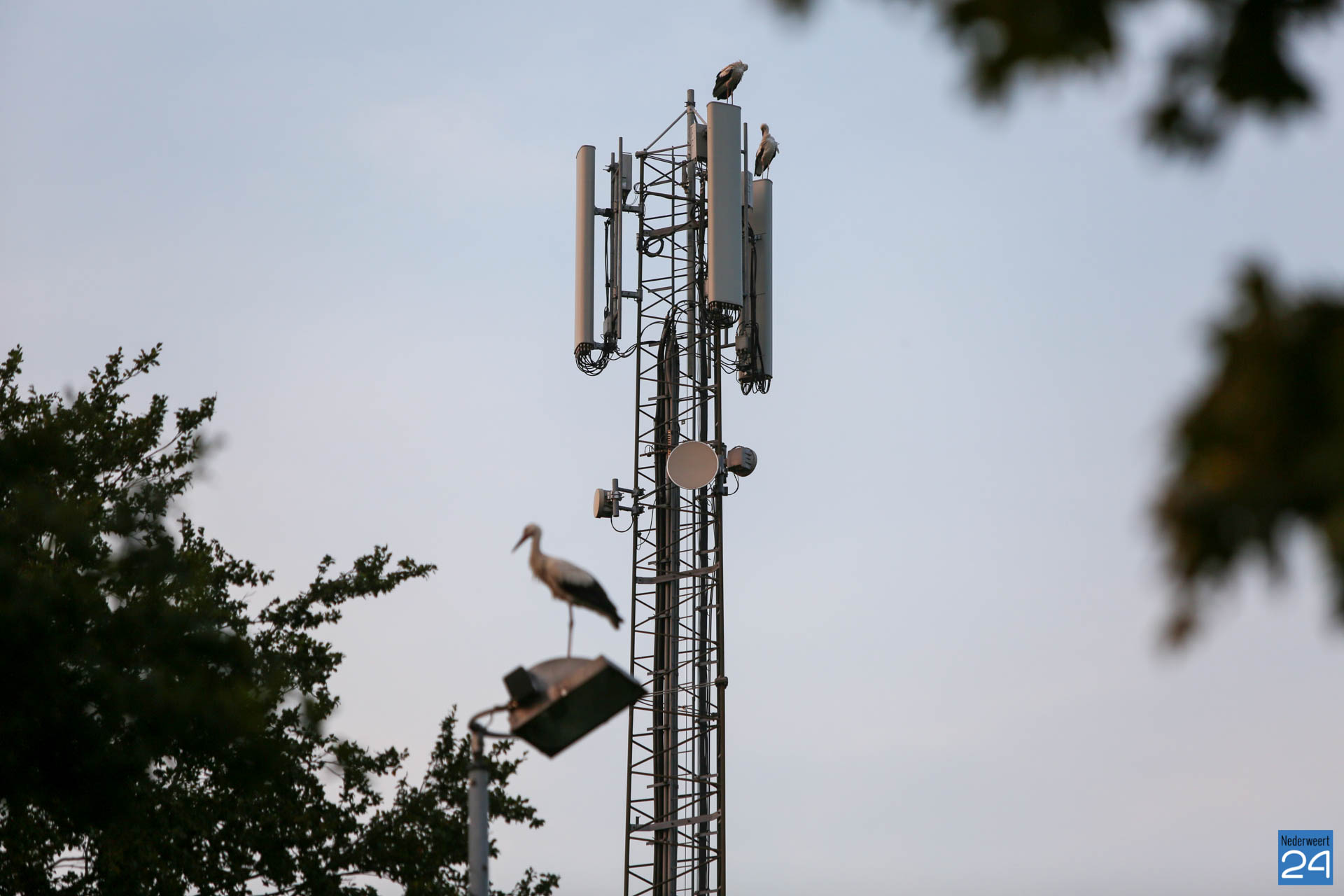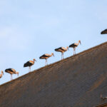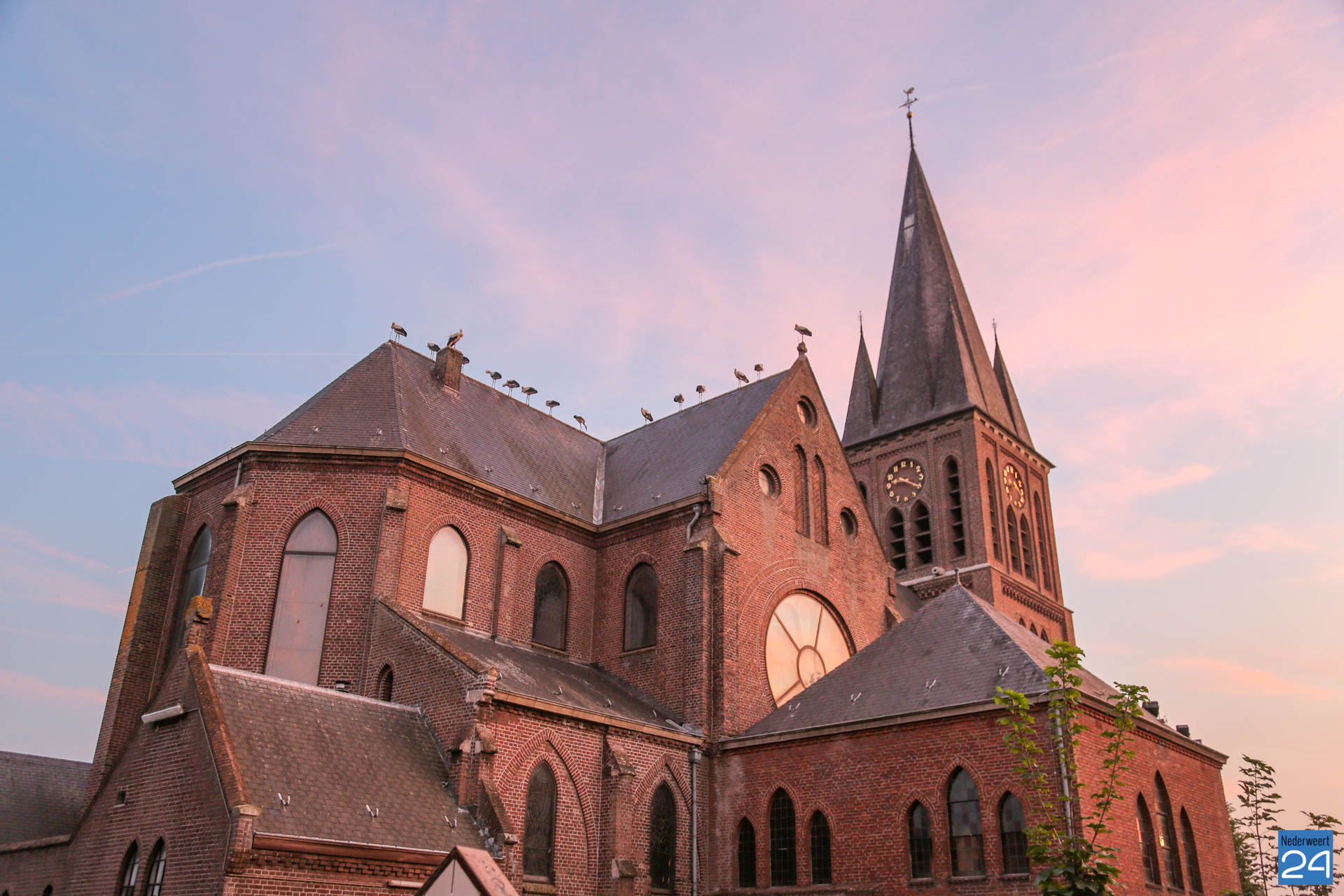 Het was zondagavond druk in het centrum van Ospel. Tientallen ooievaars streken neer in het dorp voor een overnachting op de kerk en op lichtmasten bij RKSVO en TC Meulenslag.