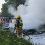 Bij een brand aan de Wessemerdijk in Grathem is een camper maandagmorgen volledig in vlammen opgegaan.