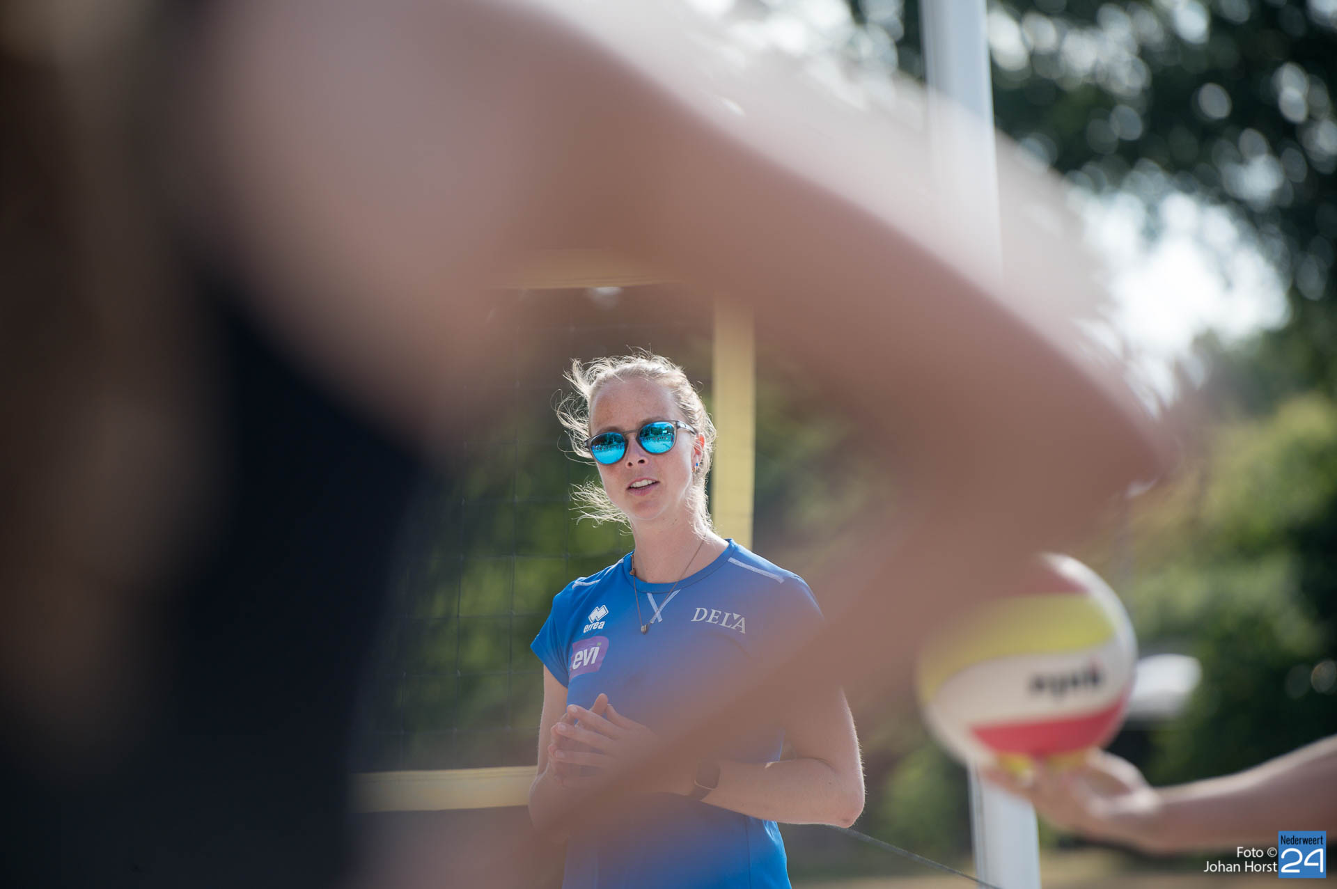 Zij verzorgden een gave clinic speciaal voor alle jeugdleden. De clinic vond plaats bij de beachvelden van sportpark St. Theunis, in Weert. Madelein Meppelink en Ruben Penninga deelden hun passie voor het beachvolleybal aan ongeveer 30 jeugdleden in een clinic.