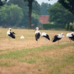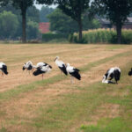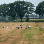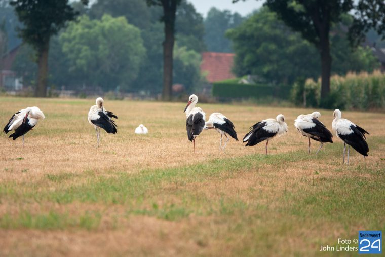In een weiland aan de Kruisvennendijk in Ospeldijk zijn zaterdagavond ongeveer dertig ooievaars neergestreken. Een bijzonder gezicht wat zorgde voor het nodige bekijks.