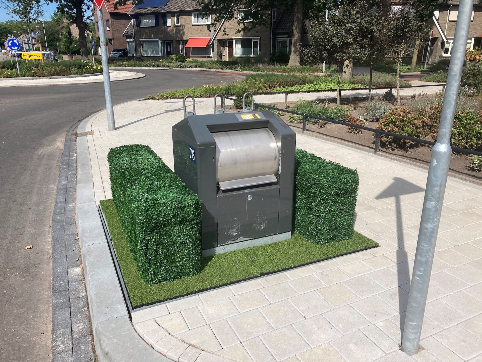 Gemeente Weert kleedt ondergrondse containers aan met kunstbuxushaagjes