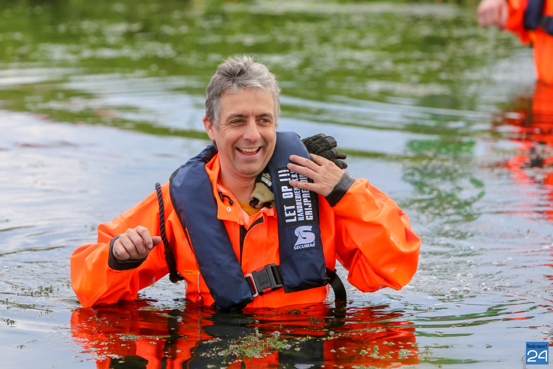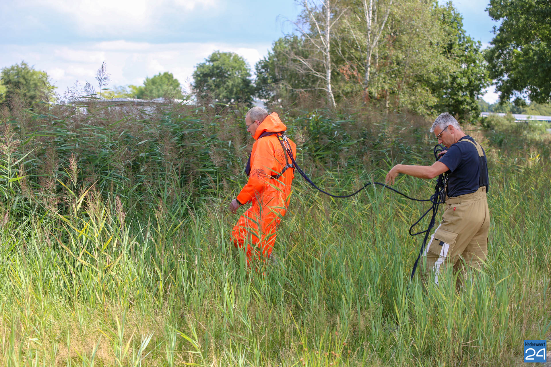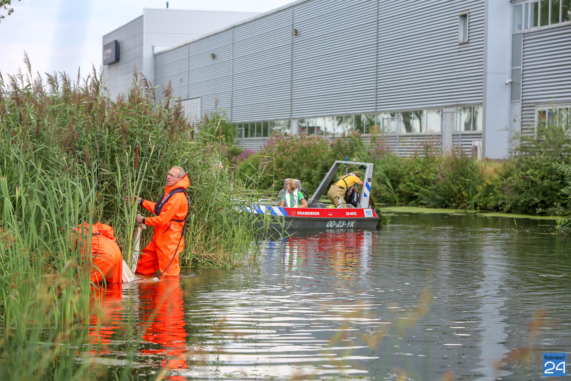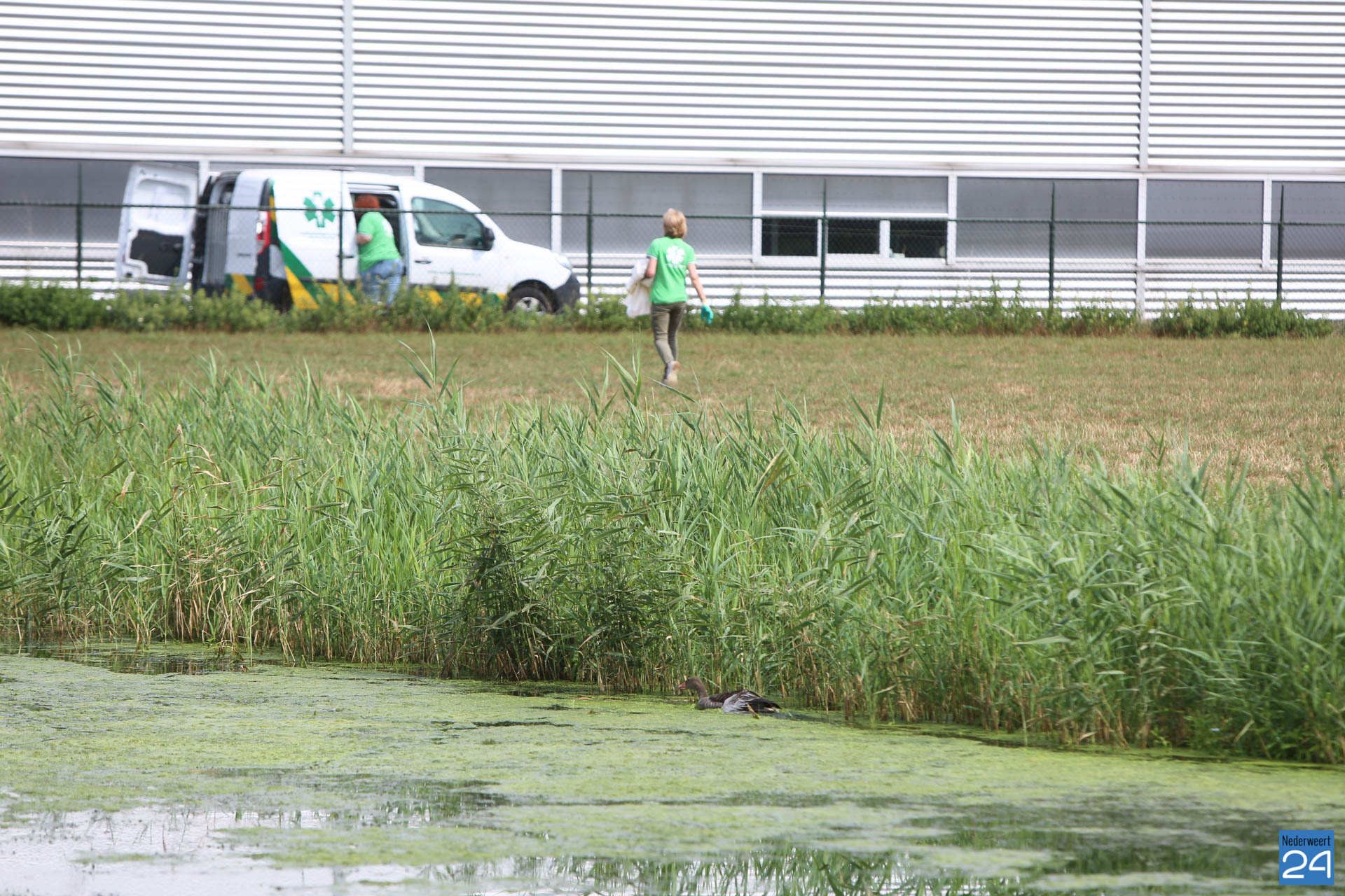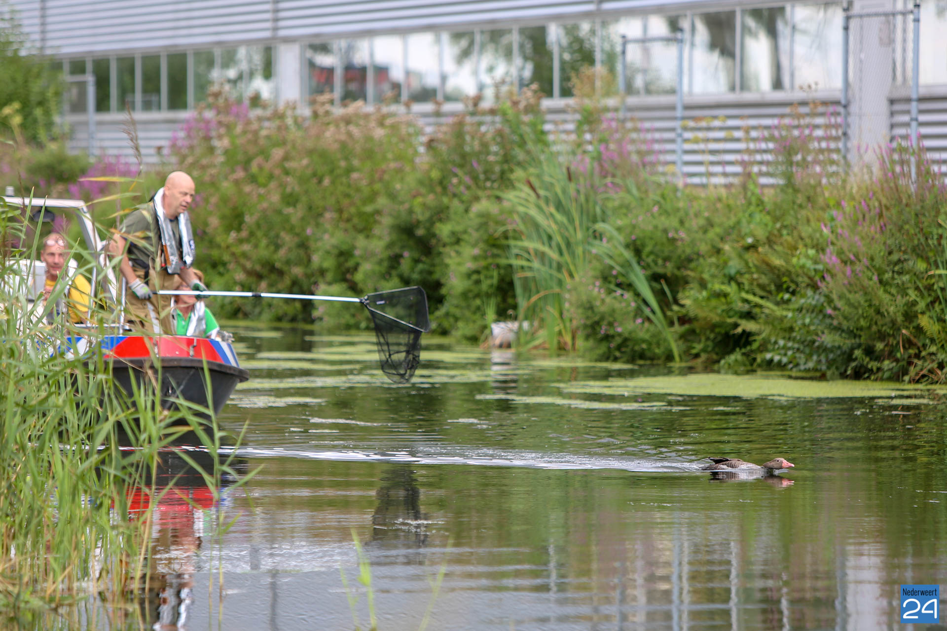 Het dier had, volgens een woordvoerder van de brandweer, een gebroken vleugel, maar liet zich niet vangen. Twee brandweerlieden gingen met speciale pakken het water in. Twee andere en een medewerker van de dierenambulance gingen te water met een bootje.