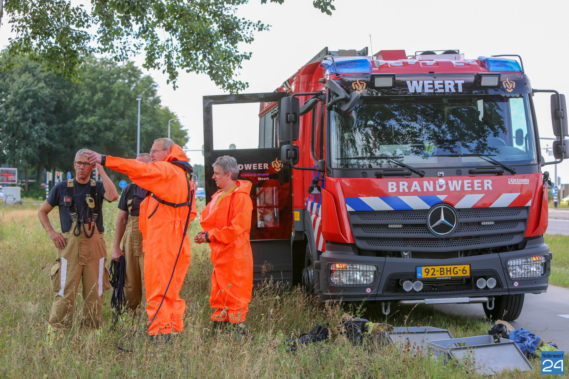 Dinsdagmiddag hebben brandweerlieden en medewerkers van de dierenambulance gepoogd een gewonde grauwe gans uit het water te halen aan de Ringbaan Noord in Weert.