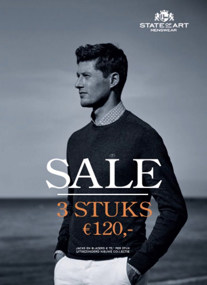 Het team van State of Art Mannenmode in Weert gaat plaats maken voor de nieuwe herfst/wintercollectie. Daarom kun je in de winkel vanaf vandaag profiteren van de exclusieve FLASH SALE 3 = € 120,00