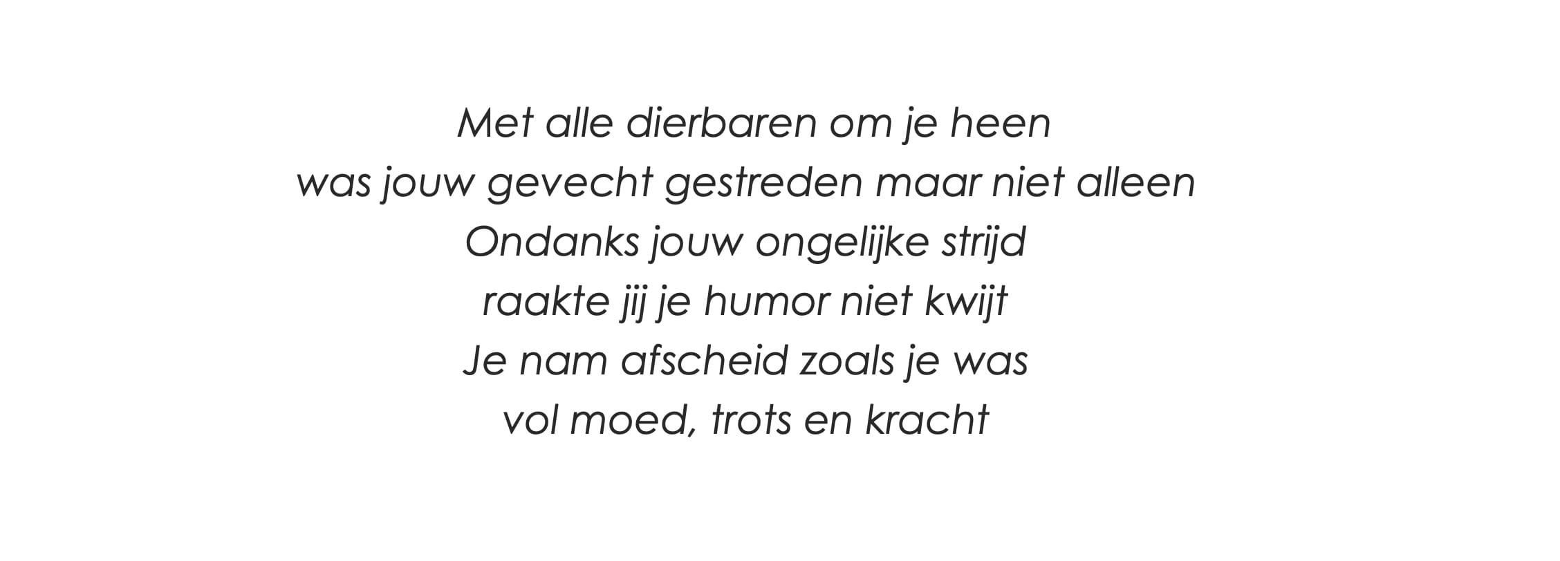 Wij wensen jullie heel veel sterkte bij het verwerken van dit zware verlies.