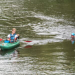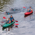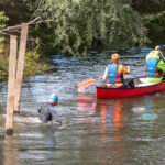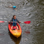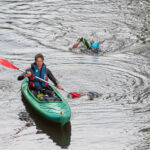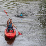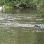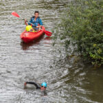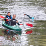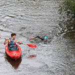 Er kon gezwommen worden op 3 afstanden. De 750mtr, 2000mtr en de 20Km. Van deze laatste was de start in Vlodrop. Maar liefst 16 team gingen de 20km lange tocht over de Roer maken. Alle teams gingen op inschrijfnummer van start. Als laatste ging het team Maarten en Daisy van der Weijden te water. Per zwemmer ging er een kano mee als begeleiding. Onderweg mochten de zwemmers wisselen met de mensen in de kano.