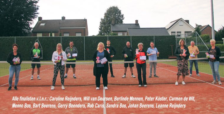 Op zondag 6 september zijn de finalewedstrijden gespeeld met aansluitend de prijsuitreiking en de gebruikelijke loterij met als hoofdprijs een reischeque van € 100,=. Voor alle finalisten was er een mooie attentie. De reischeque met een sponsorbijdrage van Reisbureau Mackus werd dit jaar gewonnen door Caroline Reijnders. Zij is lid van T.C. De Meulenslag in Ospel. Verder werden de prijzen dit jaar gesponsord door Eetcafé de Kleine Winst, Restaurant Mykonos Weert, IJssalon Florence en de Toverbal.