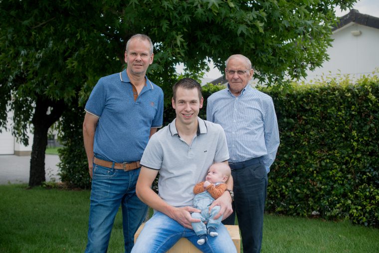 De liefde voor het vak en voor de dieren bracht hij over op zoon Thijs en kleinzoon Koen die de onderneming nu samen verder ontwikkelen en perfectioneren. “Mijn vader en ik waren altijd samen”, zo begint Thijs. “Toen ik vijf jaar was, ben ik een keer van huis weggelopen, mijn vader achterna. Niet veel later werd hij gebeld dat er een klein manneke over de Venloseweg liep”. Ook de bestemming van zoon Koen stond al vroeg vast. “Als kind liep ik al met een vijfliteremmertje achter opa door de stal om de grondeitjes op te rapen. Zodra ik thuis was uit school, gingen we op de tractor weg. Ik op de stoel, de handen aan het stuur. Opa bediende de koppeling en schakelde. Daar is het begonnen, dat gevoel van vrijheid en zelfstandigheid. Soms gebeurde het dat opa al was vertrokken als ik uit school kwam. Dan was ik ontroostbaar.”