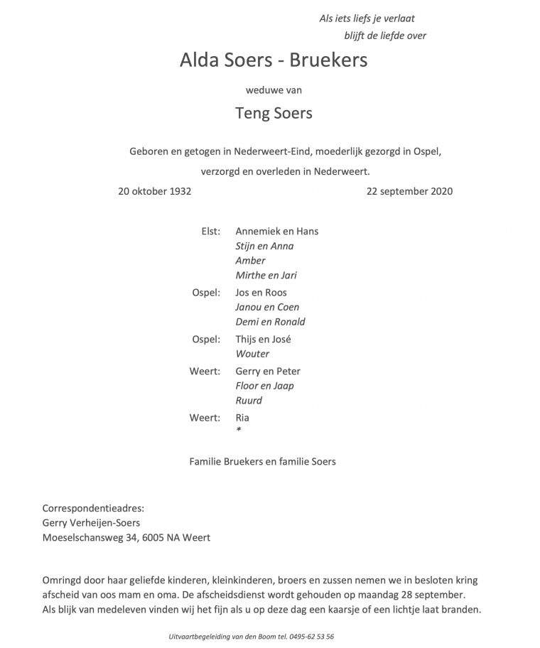 Kinderen Soers met aanhang. Gecondoleerd met dit verlies. Wij wensen jullie sterkte toe.