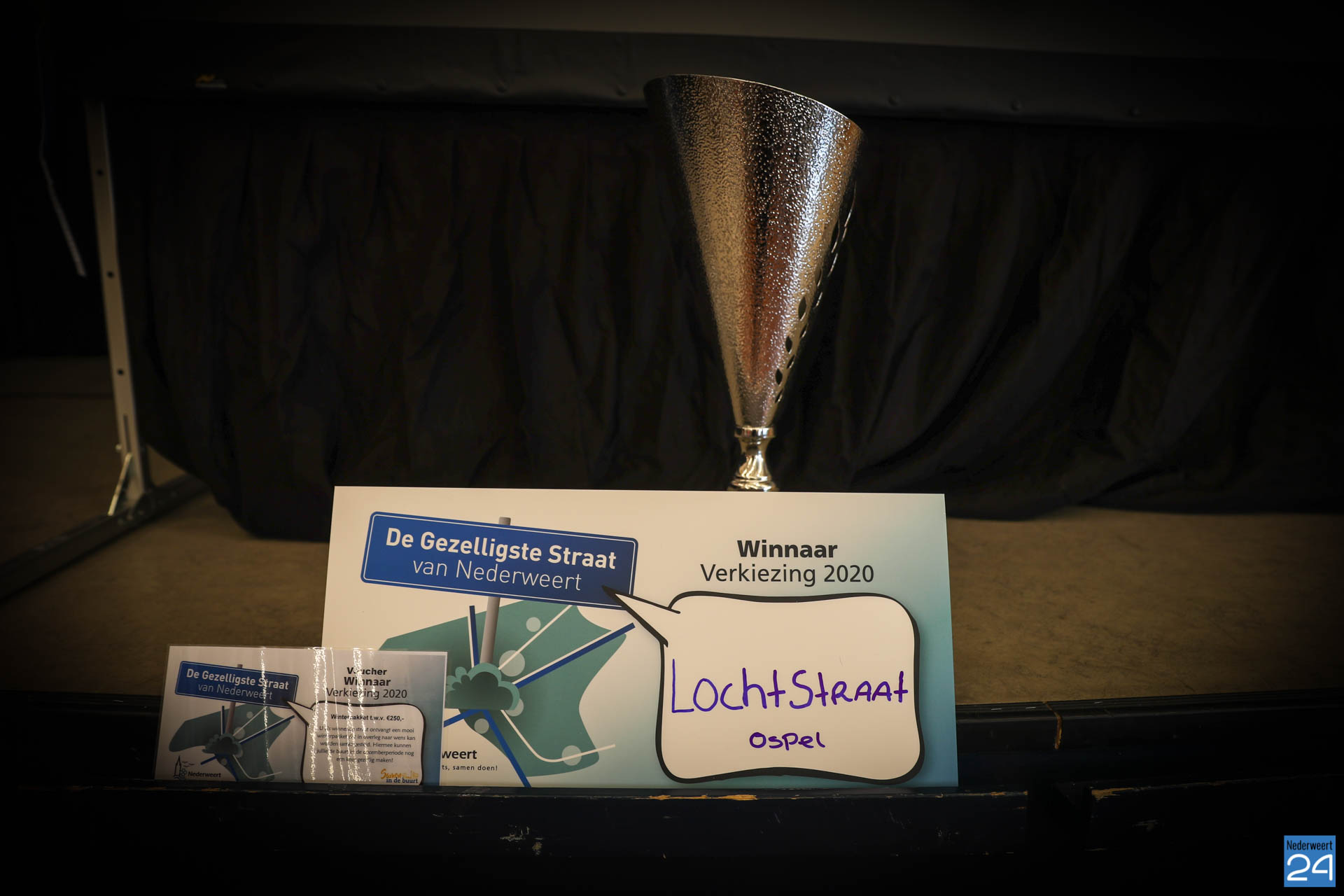 Na het overhandigen van de wisselbokaal, ontvingen de bewoners een waardebon ter waarde van € 250,-. Met deze bon kan de straat/buurt in de wintermaanden het nog een keer gezellig maken. Uiteindelijk ontvangen de bewoners van de Lochtstraat later dit jaar een straatnaambord met daarop De Gezelligste Straat van Nederweert 2020.