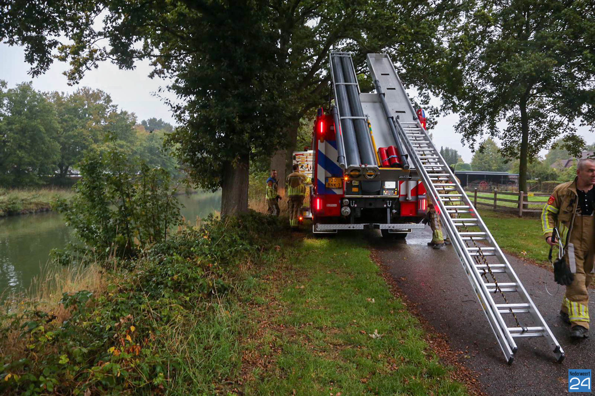 De brandweer kwam ter plaatse om hulp te bieden. De hond is door de brandweerlieden uit het water gehaald. Het beest mankeerde zover bekend niets.