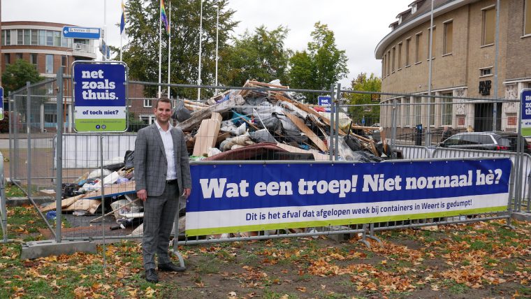 Ondergrondse afvalcontainers die in een gezellige huiskamer veranderen en een enorme afvalberg midden in de stad. Dit is de start van de campagne ‘net zoals thuis’, waarmee de gemeente Weert iets wil doen aan de vele bijplaatsingen in Weert. Elke dag staan er op verschillende plekken in Weert grof afval en zakken huisvuil naast ondergrondse afvalcontainers. Dit verpest de uitstraling van de omgeving. Wethouder Martijn van den Heuvel: “Dit afval is een grote ergernis van veel inwoners en van de gemeente. Met de campagne willen we hier aandacht voor vragen. Ik vind het belangrijk dat we allemaal bewust met ons afval omgaan en samen onze omgeving schoon houden. Meerdere acties volgen.”