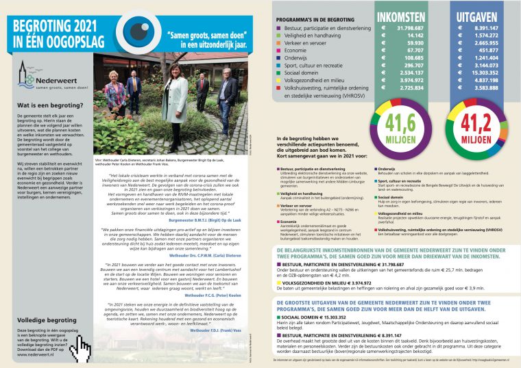 Bekijk hier de begroting van de gemeente Nederweert 2021