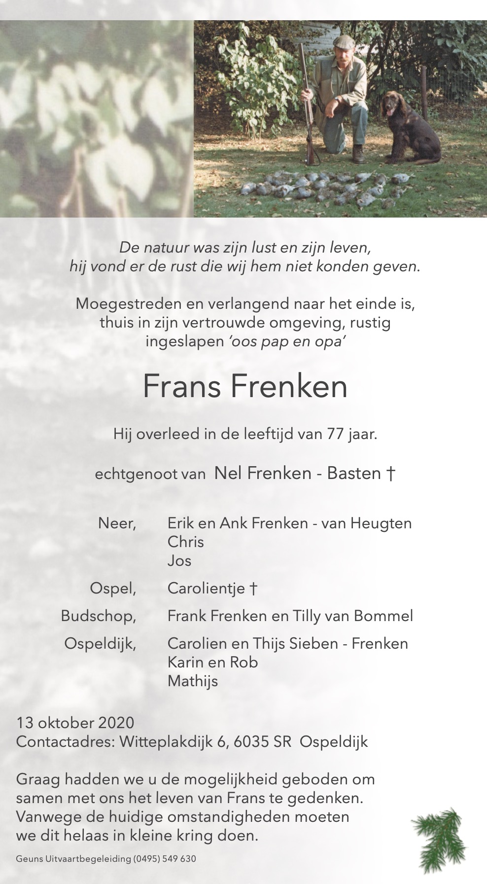 Och Frans, een markant figuur uit ons dorp. Sterkte voor kinderen en rest van de familie.