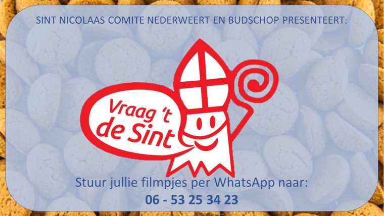 Tijdens deze uitzending kunnen alle kinderen zien hoe Sinterklaas dit jaar naar Nederweert komt. Dat zal anders zijn als andere jaren, maar dat hij komt dat staat vast. Het zal een interactieve uitzending worden waarbij Sinterklaas vragen zal beantwoorden die door de kinderen zelf zijn gesteld. Het Sint Nicolaas comité roept daarom alle kinderen van Nederweert en hun ouders op om een leuk filmpje in te sturen met een vraag. De leukste vragen zullen door Sinterklaas persoonlijk beantwoord worden in de uitzending. Stuur het filmpje vervolgens via WhatsApp naar 06-53253423.
