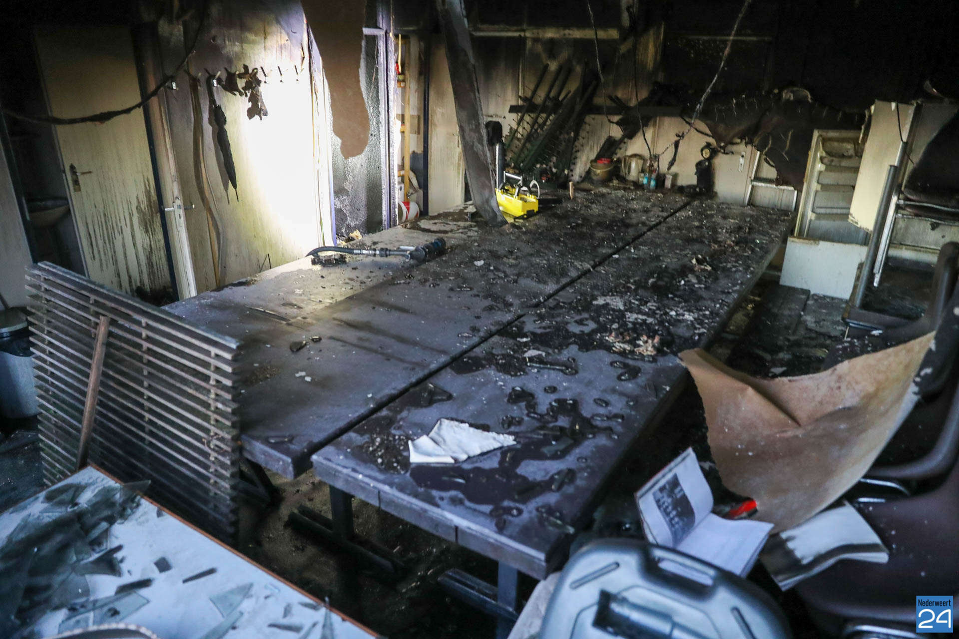 De brandweer heeft de brand geblust maar gaat het plafond en de wanden nog onderzoeken op mogelijke brandhaarden.