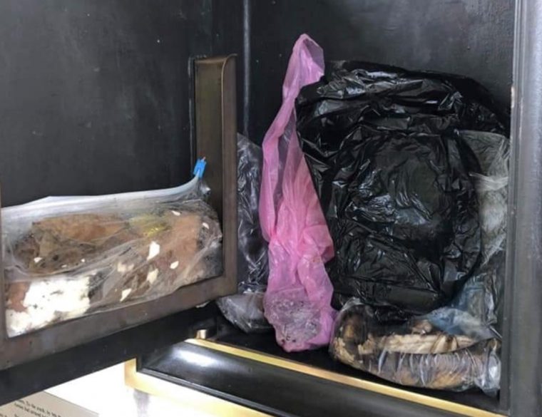 Niet alleen is het register gestolen. Ook werd het kastje moedwillig gevuld met zakjes vol hondenpoep en andere rotzooi. Stichting Adoptiegraven Nederweert War Cemetery deed een dringende oproep aan buurtbewoners en voorbijgangers die iets gezien hebben om zich te melden.