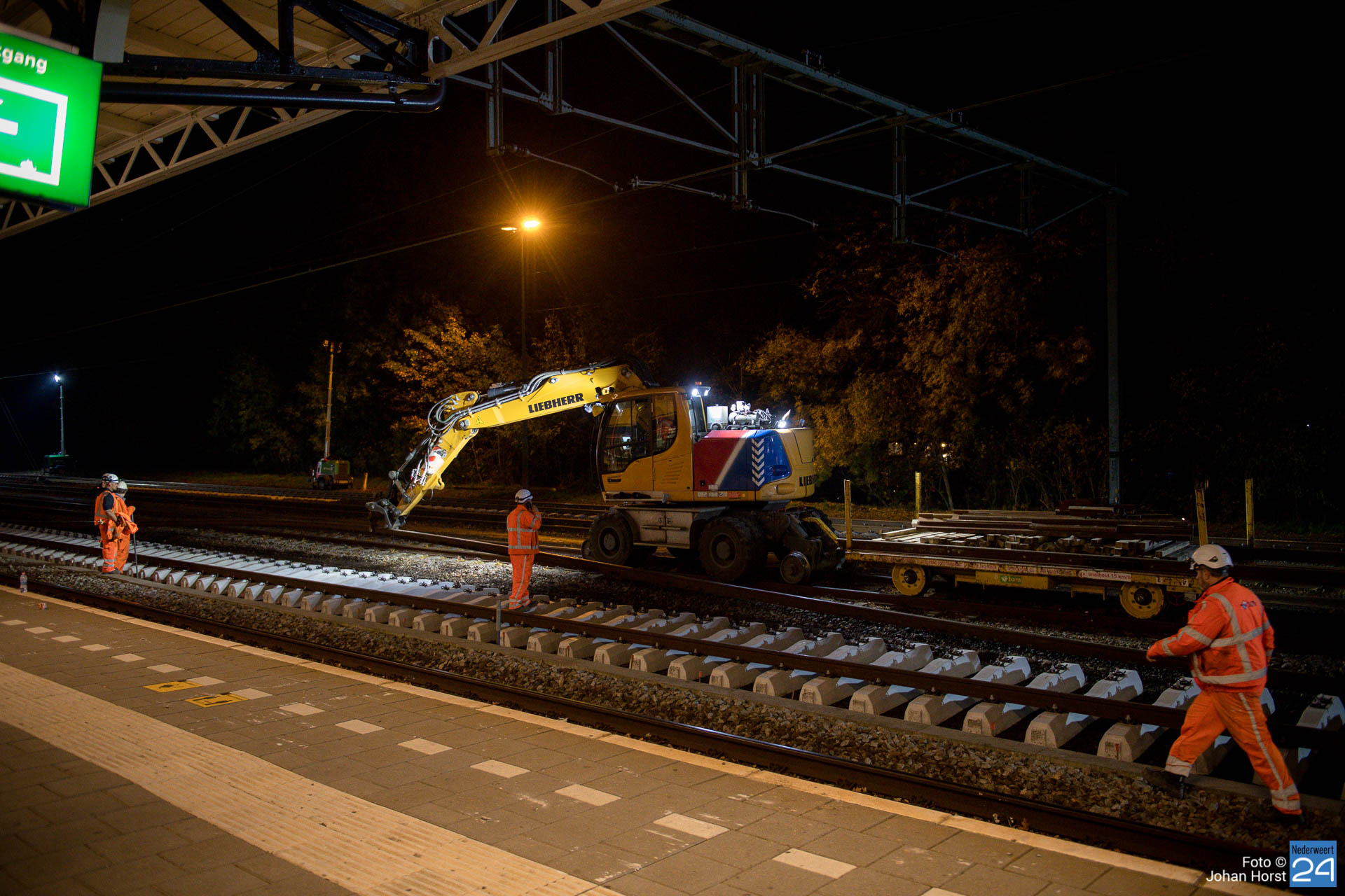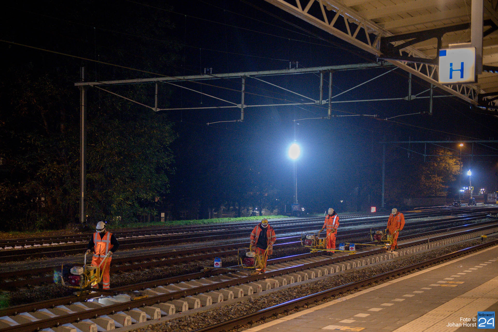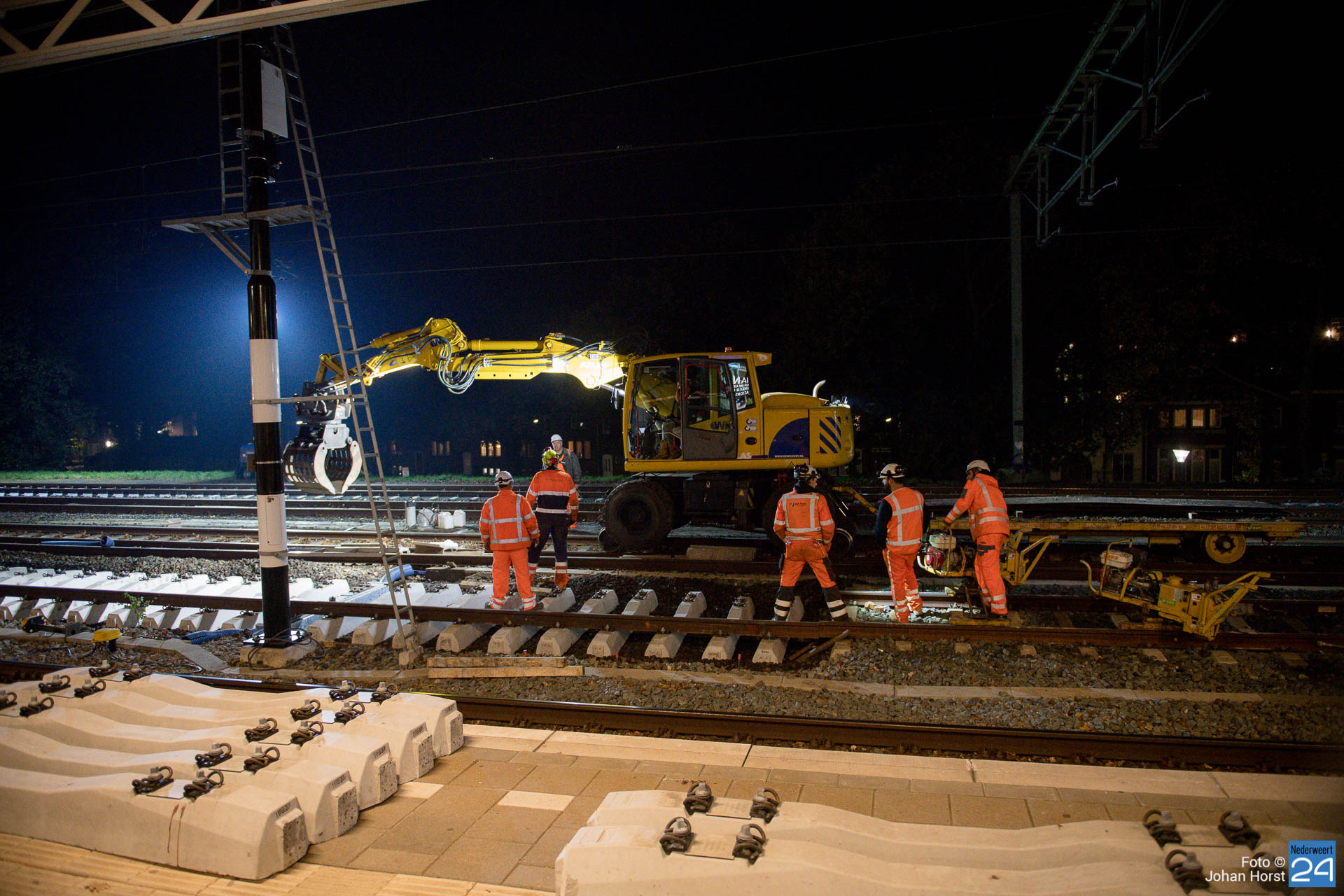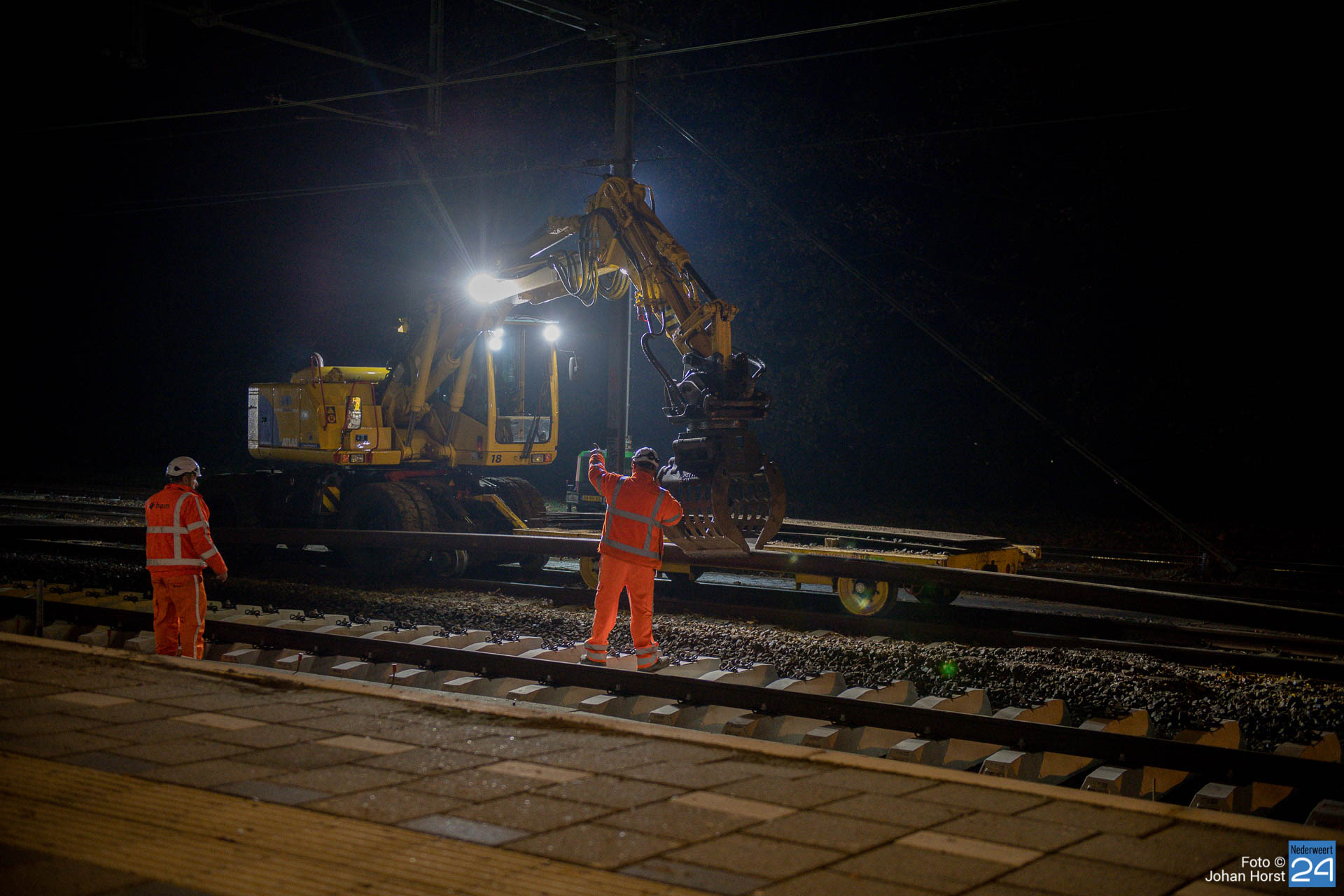In de avond werken ‘de mannen van het spoor‘ gewoon door. Nog een paar uur doorwerken en dan kan het treinverkeer op maandagmorgen weer netjes en veilig hervat worden.