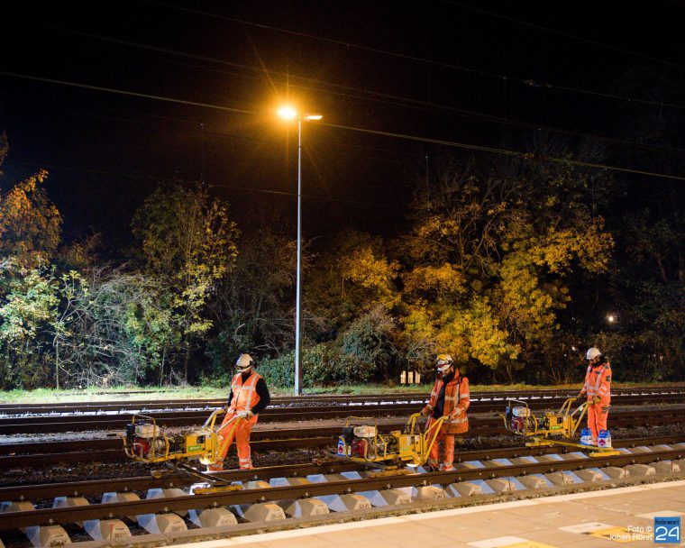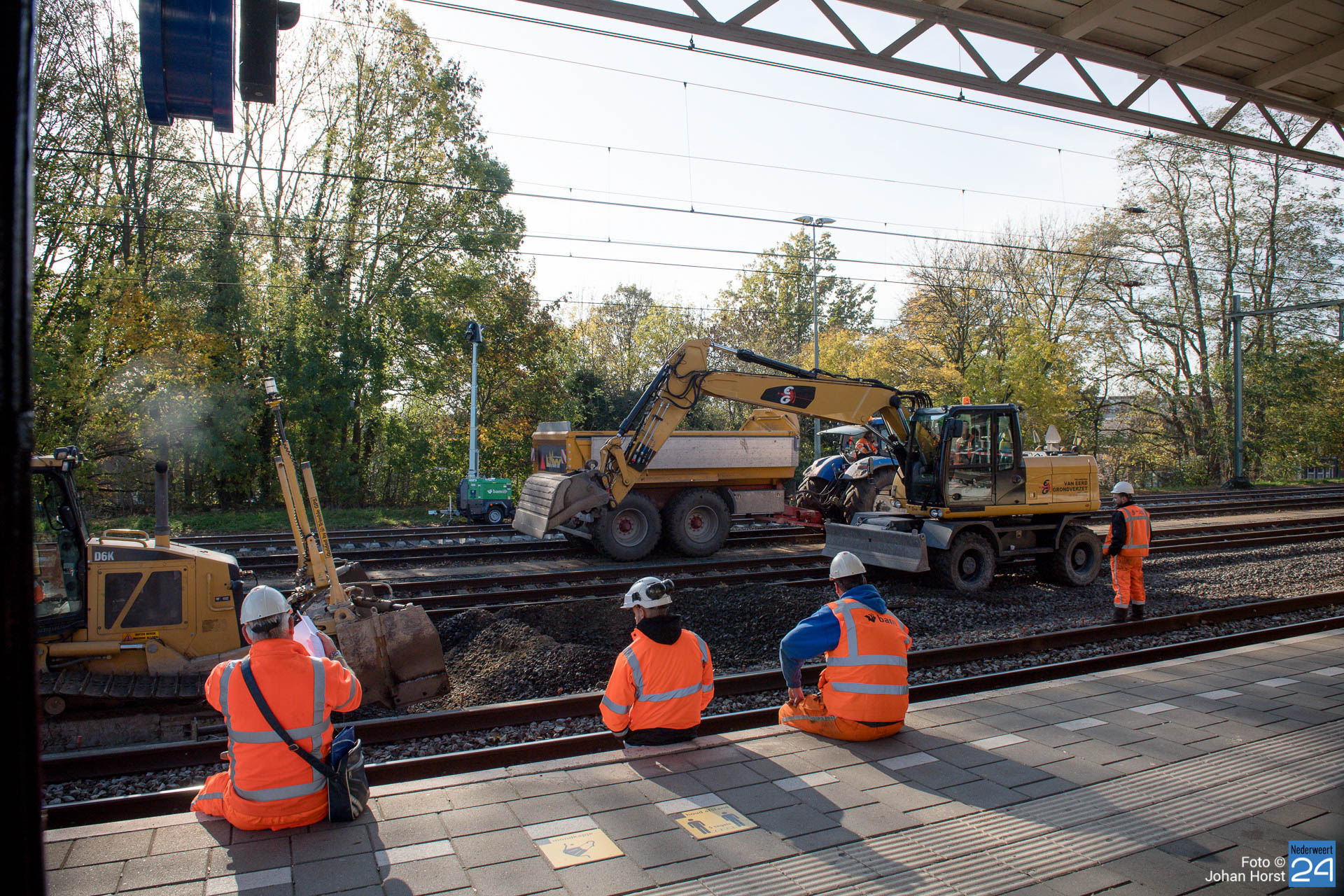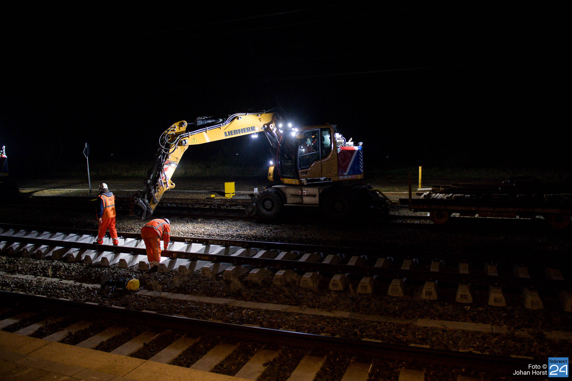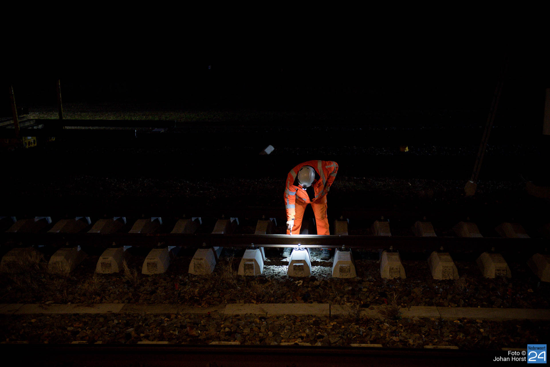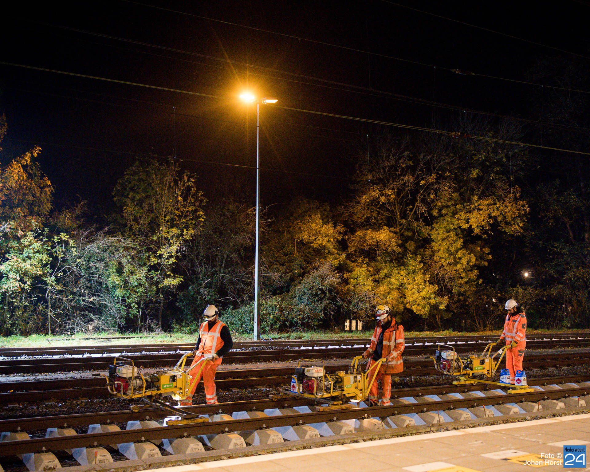 In de avond werken ‘de mannen van het spoor‘ gewoon door. Nog een paar uur doorwerken en dan kan het treinverkeer op maandagmorgen weer netjes en veilig hervat worden.