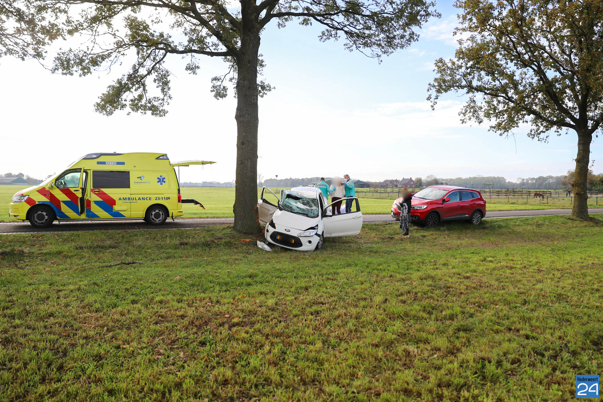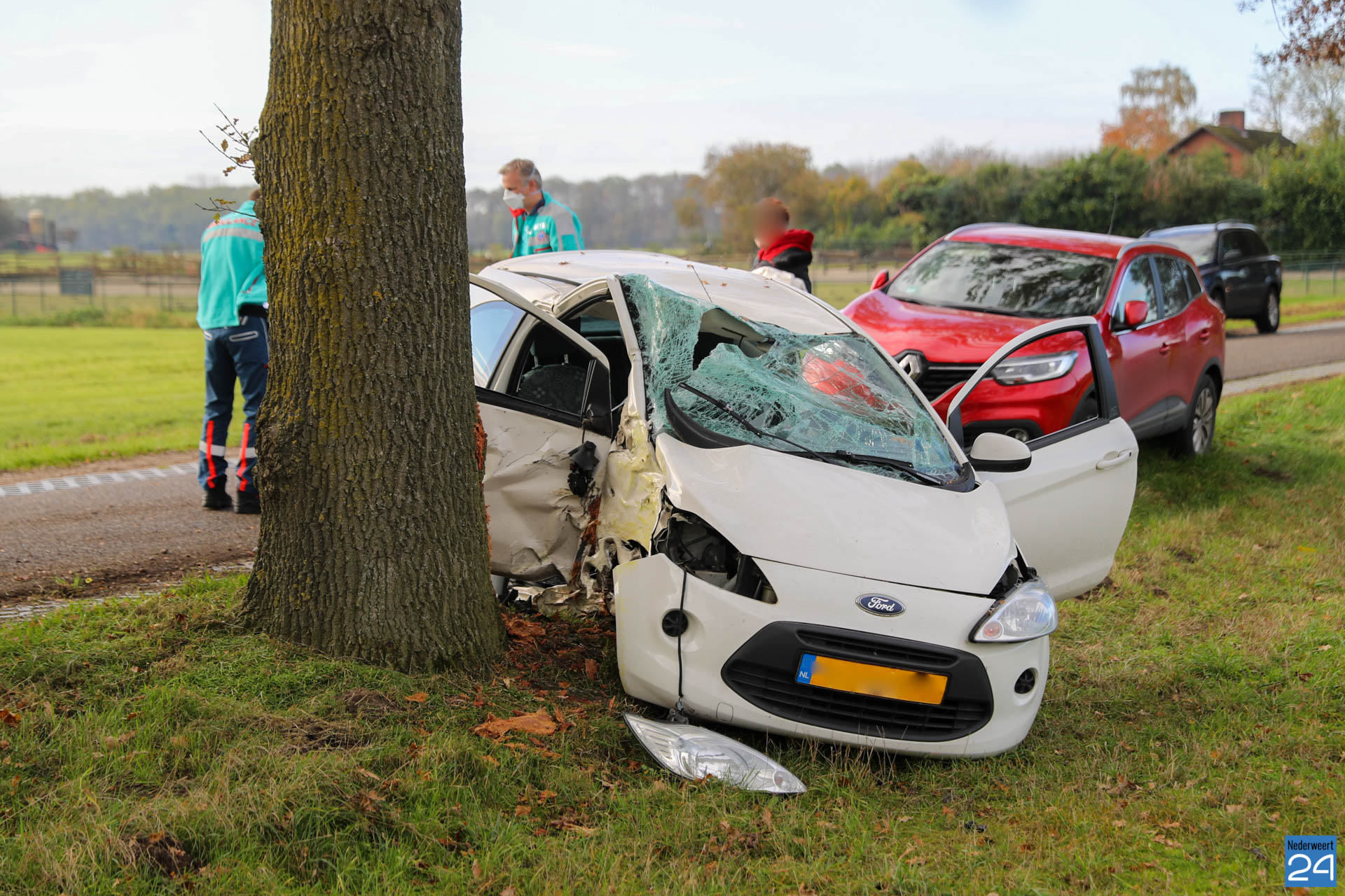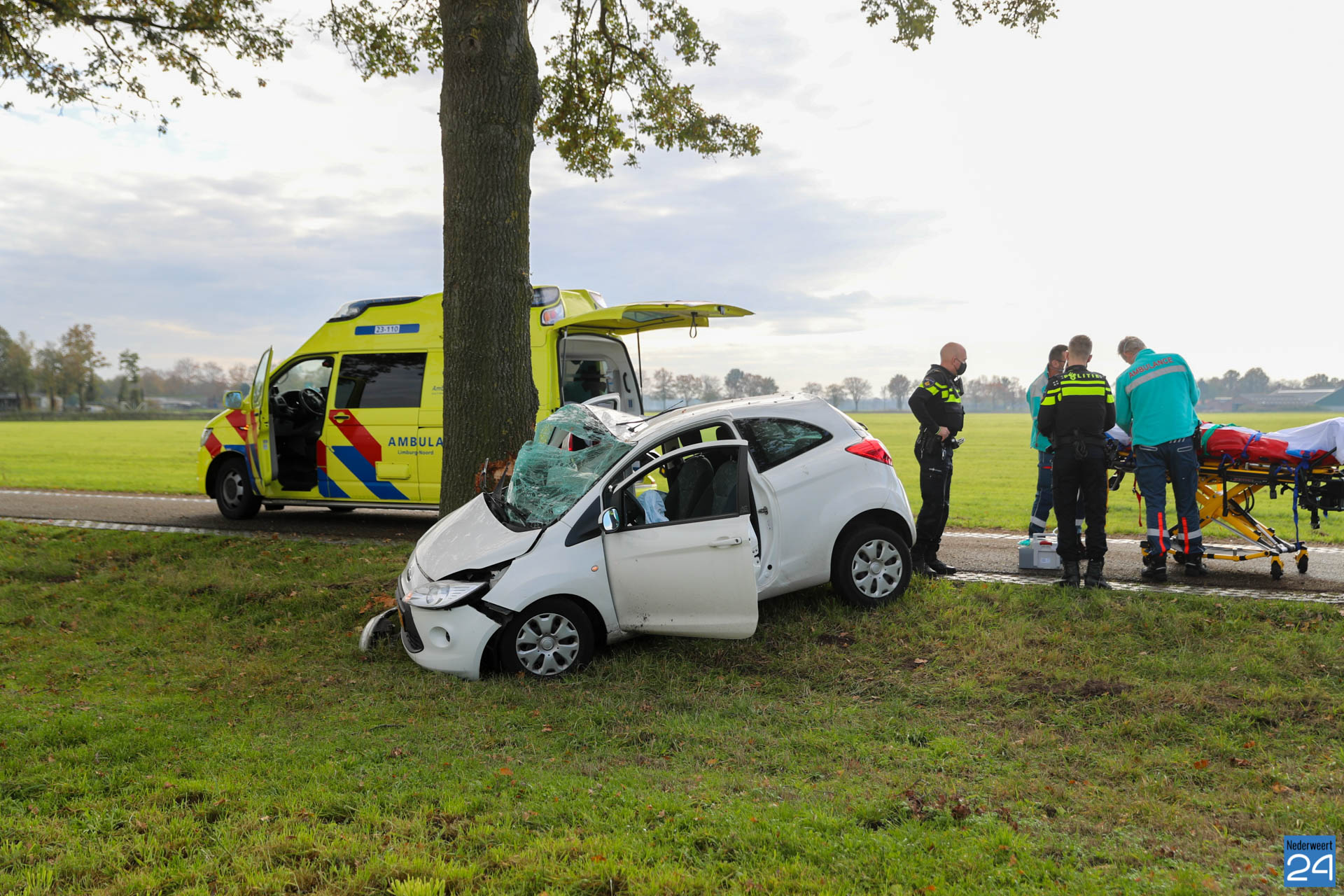 De bestuurster reed vanuit Nederweert-Eind richting Heythuysen op de Kruisstraat in Nederweert. Net bij de overgang Kruisstraat – Hollander kwam ze een tegenligger tegemoet. Door een stuurcorrectie raakte ze rechts naast de weg en vervolgens reed ze links tegen een boom. De tegenligger heeft het waarschijnlijk niet gezien want is doorgereden.