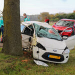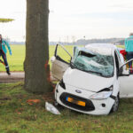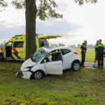 Maandagmiddag, rond 12:20 uur, is een personenauto hard tegen een boom gebotst nadat deze moest uitwijken voor een tegenligger. De bestuurster raakte rechts naast de weg en is na een stuurcorrectie links tegen een boom gereden.