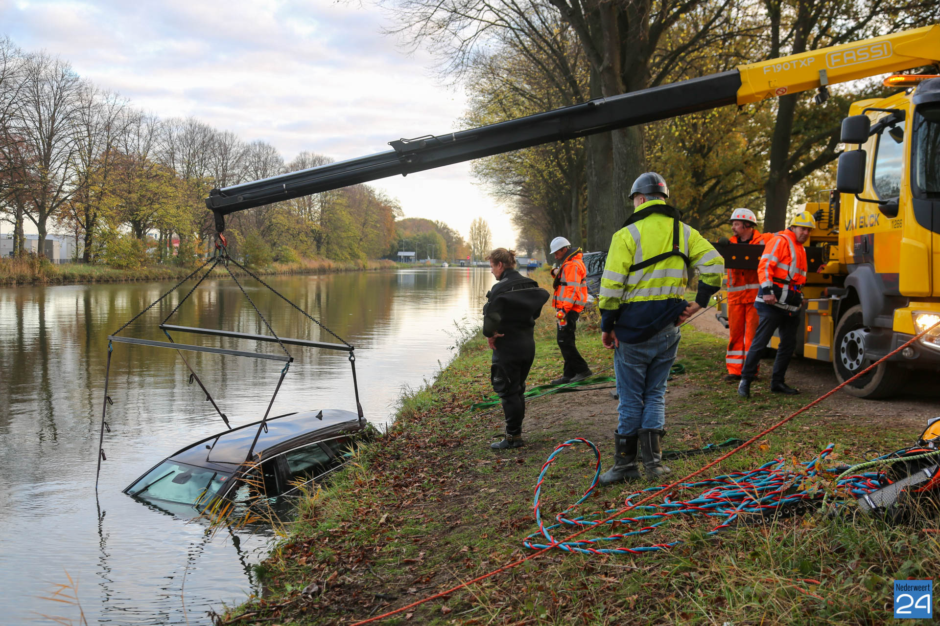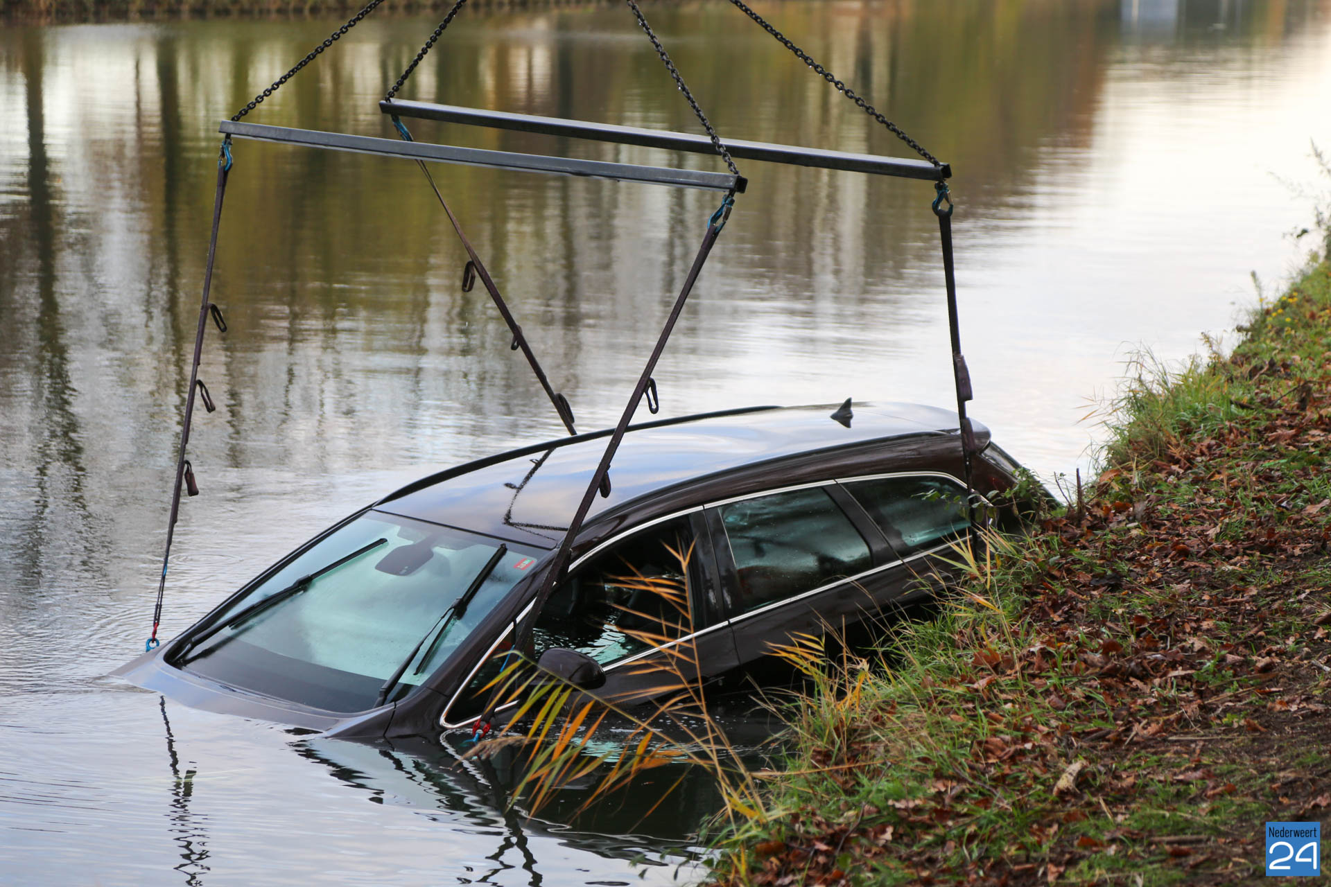Het zou een mooie dag worden, maar de dag verliep heel anders dan verwacht. In de vroege vrijdagmorgen gingen vader en zoon op pad om een hengeltje uit te gooien. Op het zandpad aan de Wessemerdijk ter hoogte van VDL Kunststoffen rolde plotseling tijdens het uitpakken van de visspullen hun auto het kanaal in. ”We zagen onze auto nog een tijdje drijven, maar even later verdween hij onder water,” vertelt de eigenaar van het voertuig. ”Mijn telefoon lag nog in de auto. Gelukkig had mijn zoon wel z’n mobiel op zak zodat we 112 konden bellen.” De visser is vooral blij dat er geen persoonlijke ongelukken zijn gebeurd en het alleen bij materiële schade blijft.