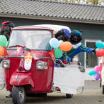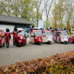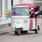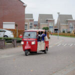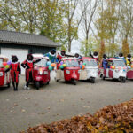 Omdat de kinderen niet naar Sinterklaas toe kunnen komen, kwamen de Pieten dit jaar mét mondkapje naar de kinderen toe! Verschillende roetveegpieten kwamen zondagmiddag met tuktuk’s naar Ospel.