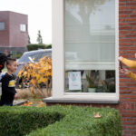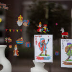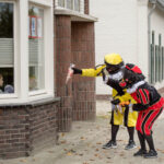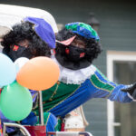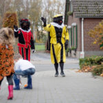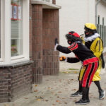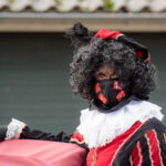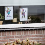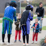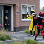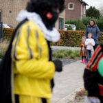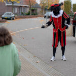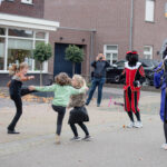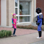 Dit keer geen grootse intocht met bijbehorend feest in de Haaze-Hoof. Nee kleurplaten maken, en voor het raam hangen, zo weten de pieten waar ze moesten zijn. Zwaaien en wat lekkers achterlaten. Soms was de verleiding toch echt te groot en werden er buiten foto’s gemaakt,
