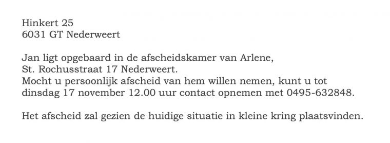 Gecondoleerd met het overlijden van Jan en